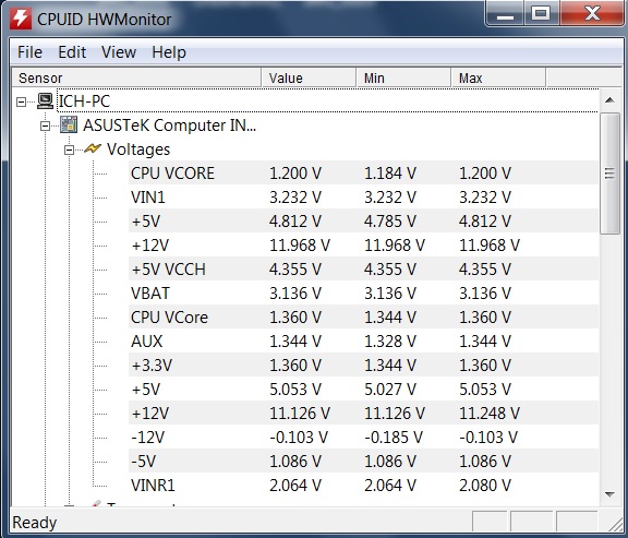 1. mit CPUIDs HWMonitor bekomme ich folgende Ausgabe