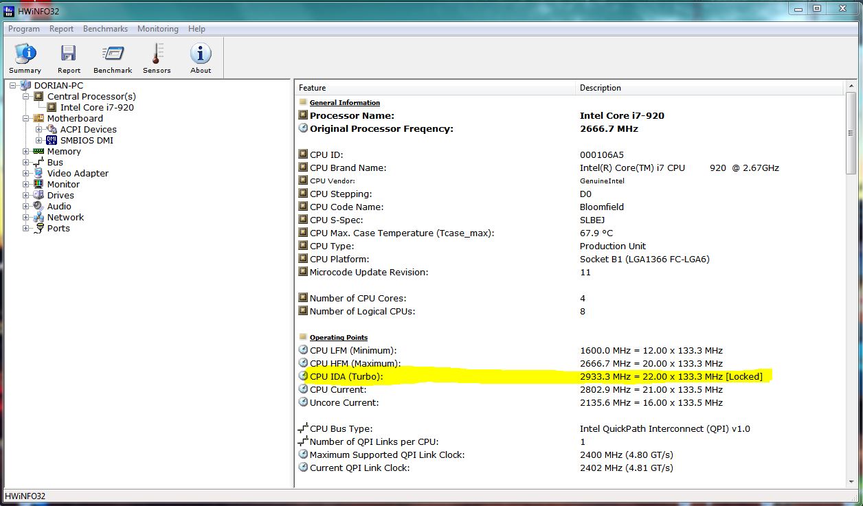 Wie ihr schon am Titel erkennen könnt taktet mein i7 920 (nicht overclocked) wenn nur ein Kern unter lasst ist nicht auf 2.933 GHz hinauf!