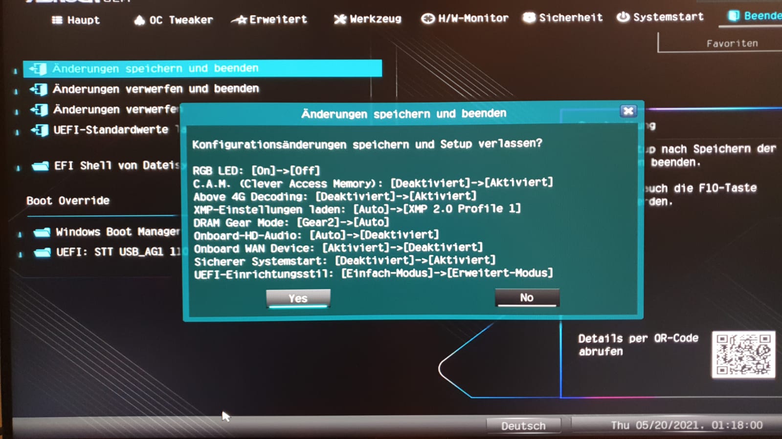 Ja, die Temperaturen sind bisher sehr angenehm. Wegen dem Gear 1 Mode muss ich noch mal schauen, bisher habe ich nur das XMP Profil geladen, dabei hat er den Auto 2 Mode anscheinend deaktiviert. Was mich bloß noch wundert ist, dass rBAR jetzt mit dem neuen Nvidia Treiber wieder aus ist, obwohl Above 4G und CAM an sind und das CSM deaktiviert ist (siehe Bild). Muss mal schauen, ob ich beim Einbau an den BIOS Schalter der Graka gekommen bin. Das zweite BIOS hatte ich noch original belassen.