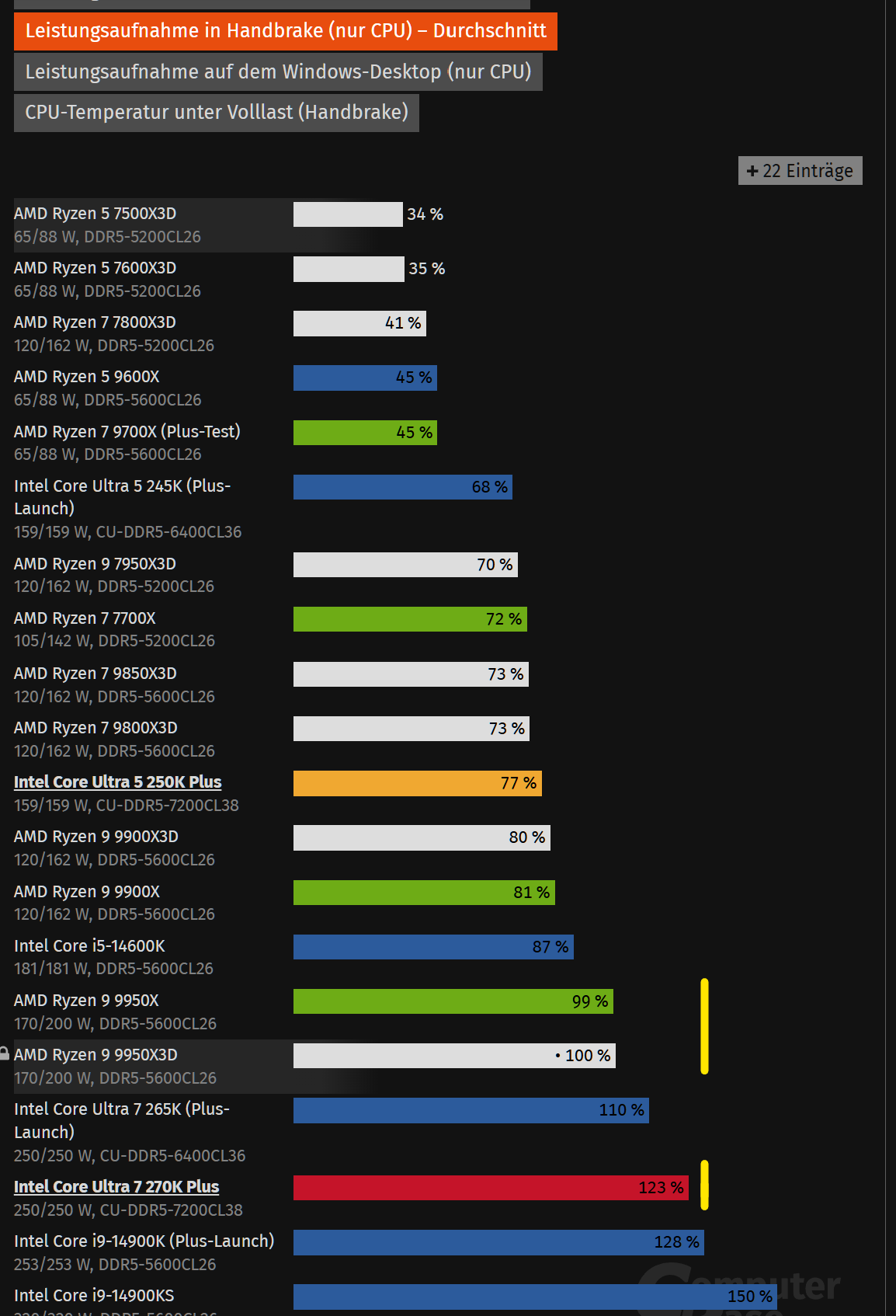 Der 270K+ is für mich eine Enttäuschung, des is wie ein KS schlimmer gehts nimmer. Sämtliche gefundenen Takte hochgepumped bis zum Gehtnichtmehr, aber das können sie ziemlich gut. Und die Leistungsaufnahme, des is ne Zumutung.