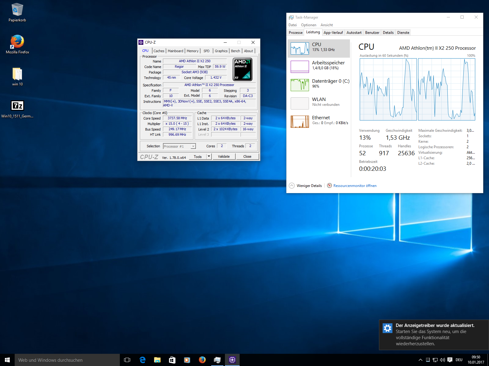 Ich habe ein AMD Athlon II X2 250 mit 3,00 Ghz Standardtakt (übertaktet auf 3,7 Ghz)