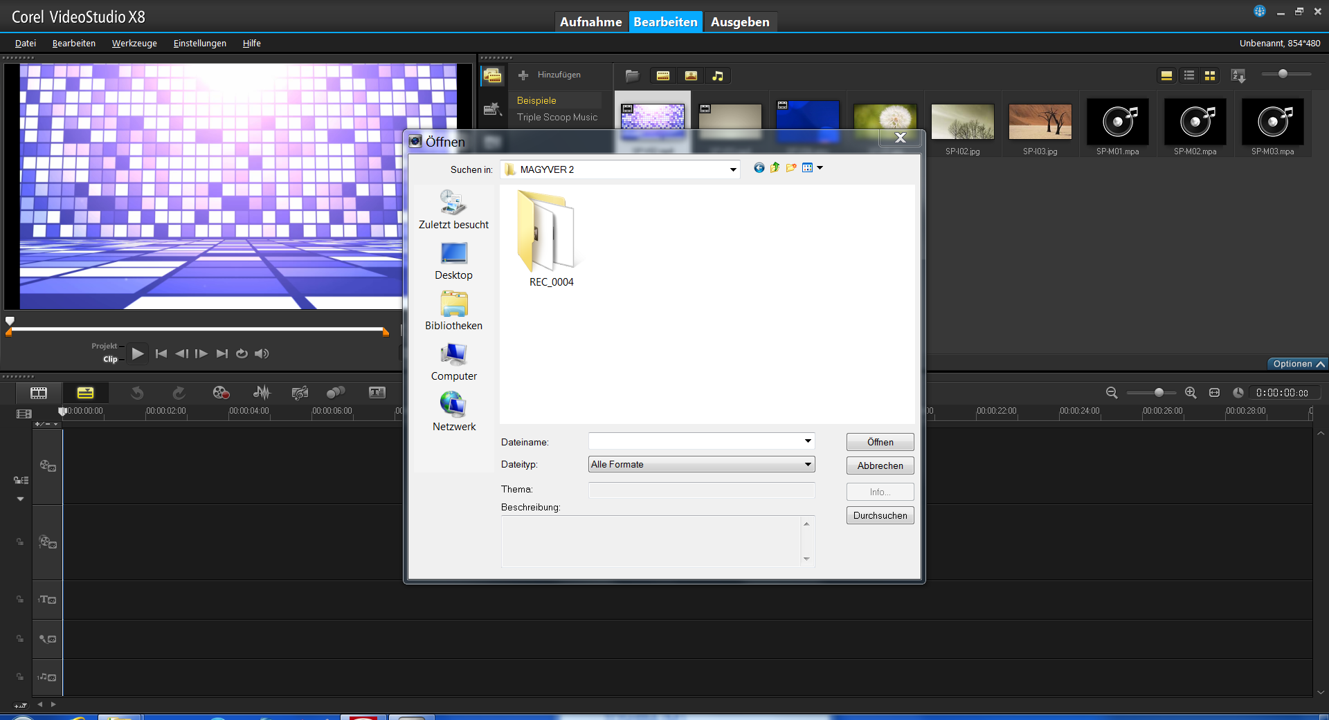 COREL VIDEO 8 Filme ins Studio rein zu bekommen?