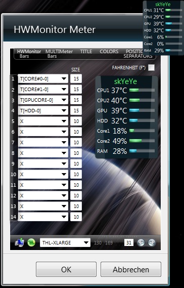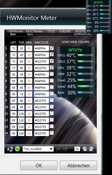 Ich kriegs nicht gebacken über das CoreMeter mir die Temperatur und so anzeigen zulassen.