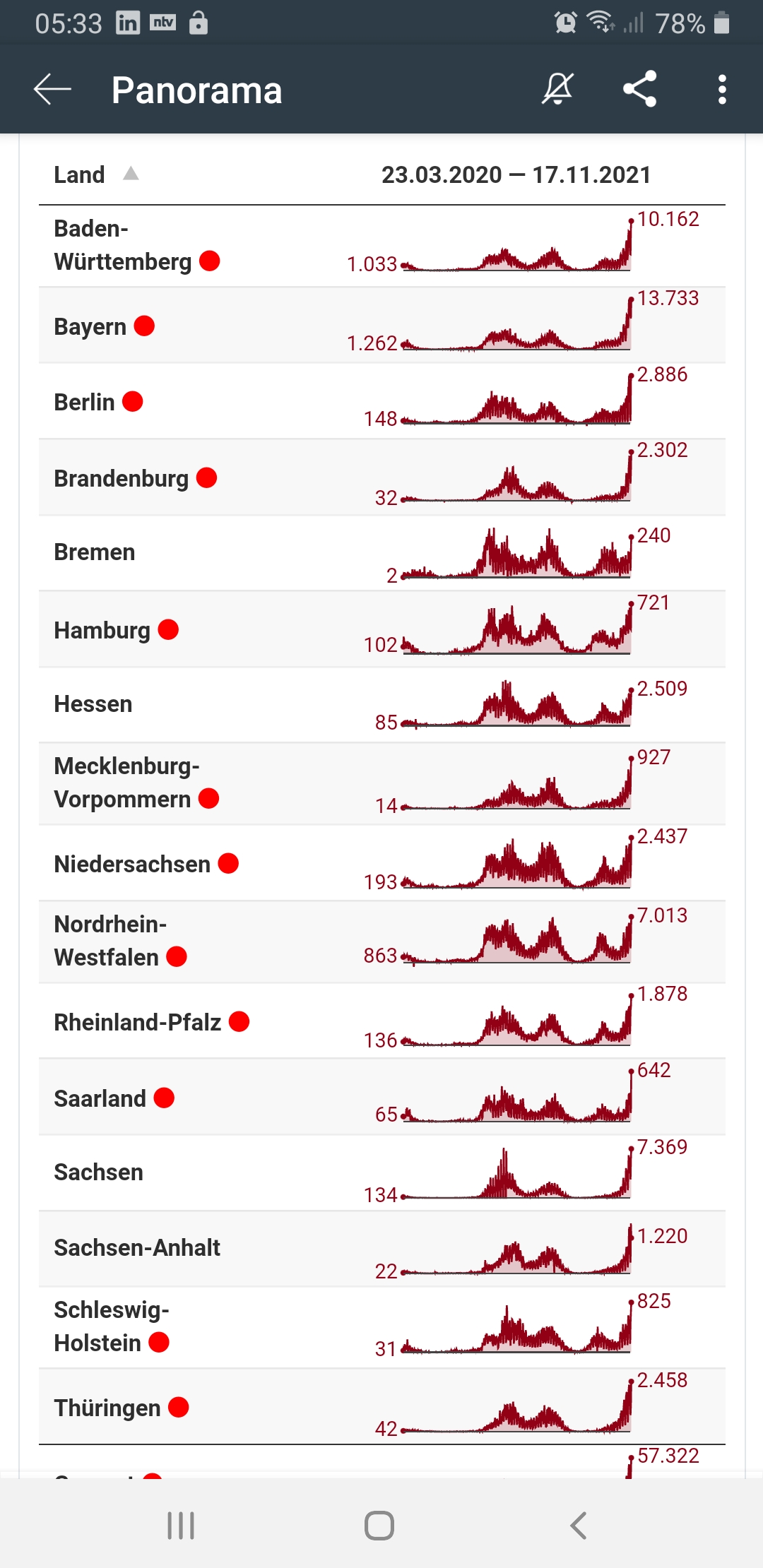 Kleines Beispiel wozu so etwas führt. Meine Mutter 76 hat seit 10 Tagen ne Grippe und liegt mit Husten usw Flach. Der geht es ziemlich beschissen. Geht Sie aber zum Arzt? Nein weil Sie zu große Angst hat sich dort mit Covid anzustecken, was als Doppeninfektion ziemlich sicher ihr Todesurteil wäre... und ganz im Ernst ich habe ihr immer gesagt Sie soll doch zum Arzt gehen, es könnte sich zu ner Lungenentzündung aufwachsen und Sie ist da eh immer sehr gefährdet eine Bronchitis zu bekommen. Aber Sie hat leider Recht. Wir haben ne Inzidens von ca 400 jetzt. Danke danke danke nochmals an alle...