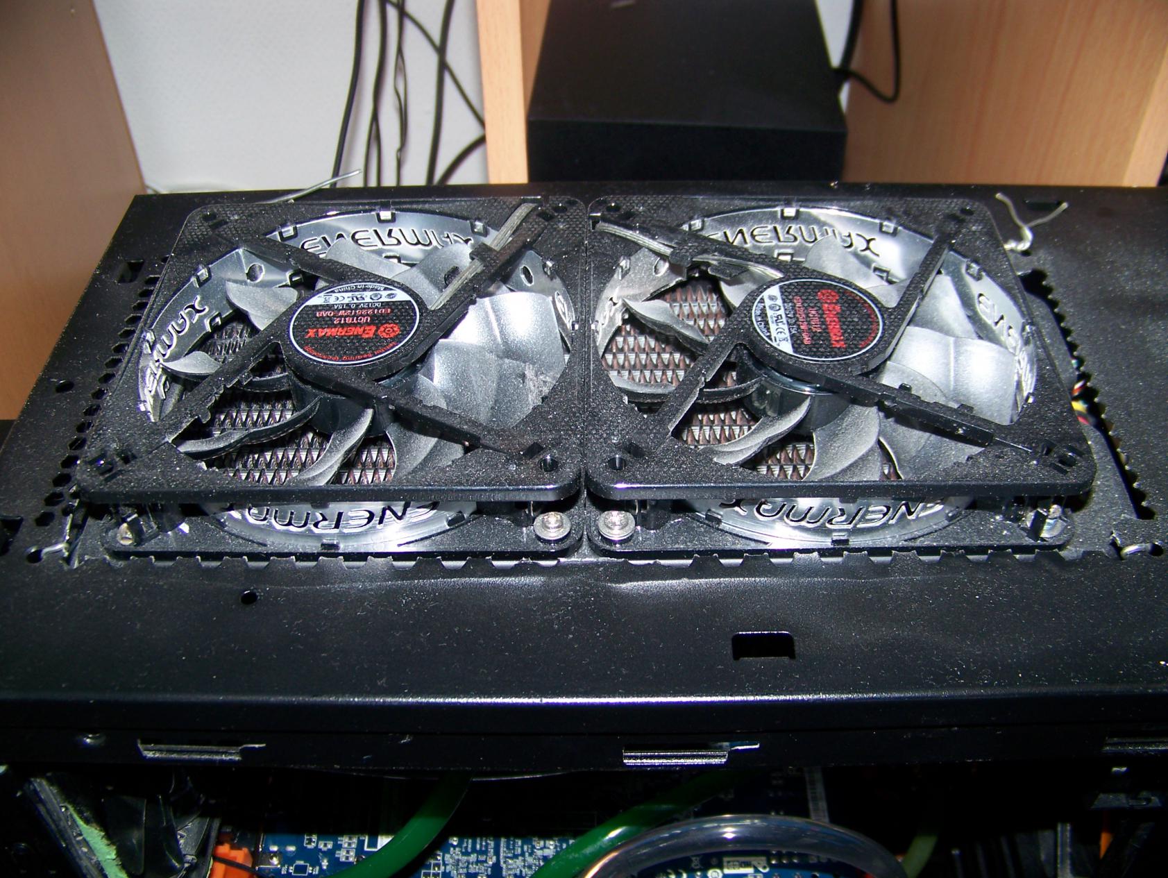 ja genau unter das gitter die lüfter in deinem fall...in meinem fall hab ich die lüfter im Gehäuse und den Radi oben ins gitter, weil mein radi 4,5cm hoch ist und der passt nicht ins gehäuse