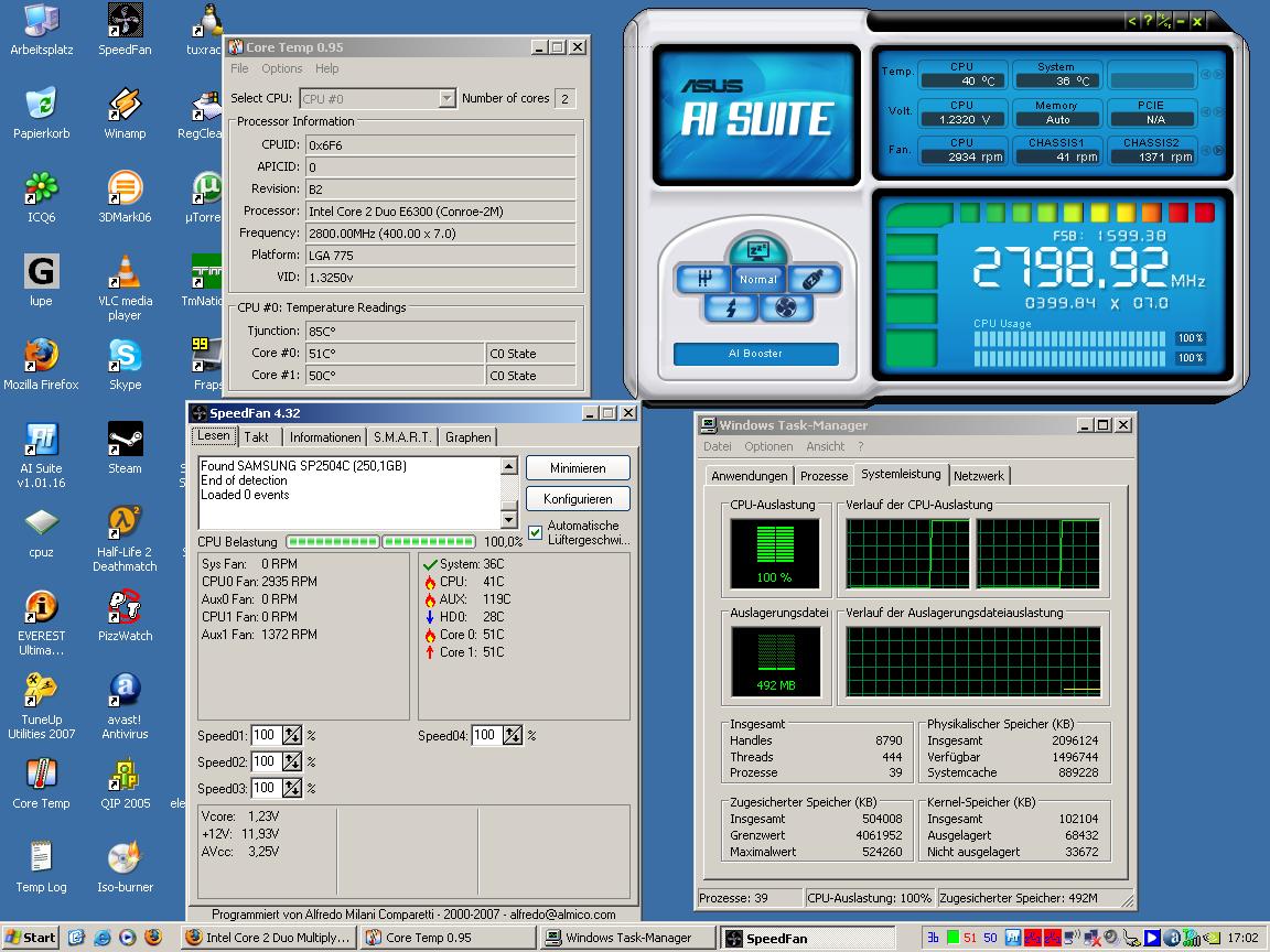 43° Kerntemperatur im idle und 58° bei Last!