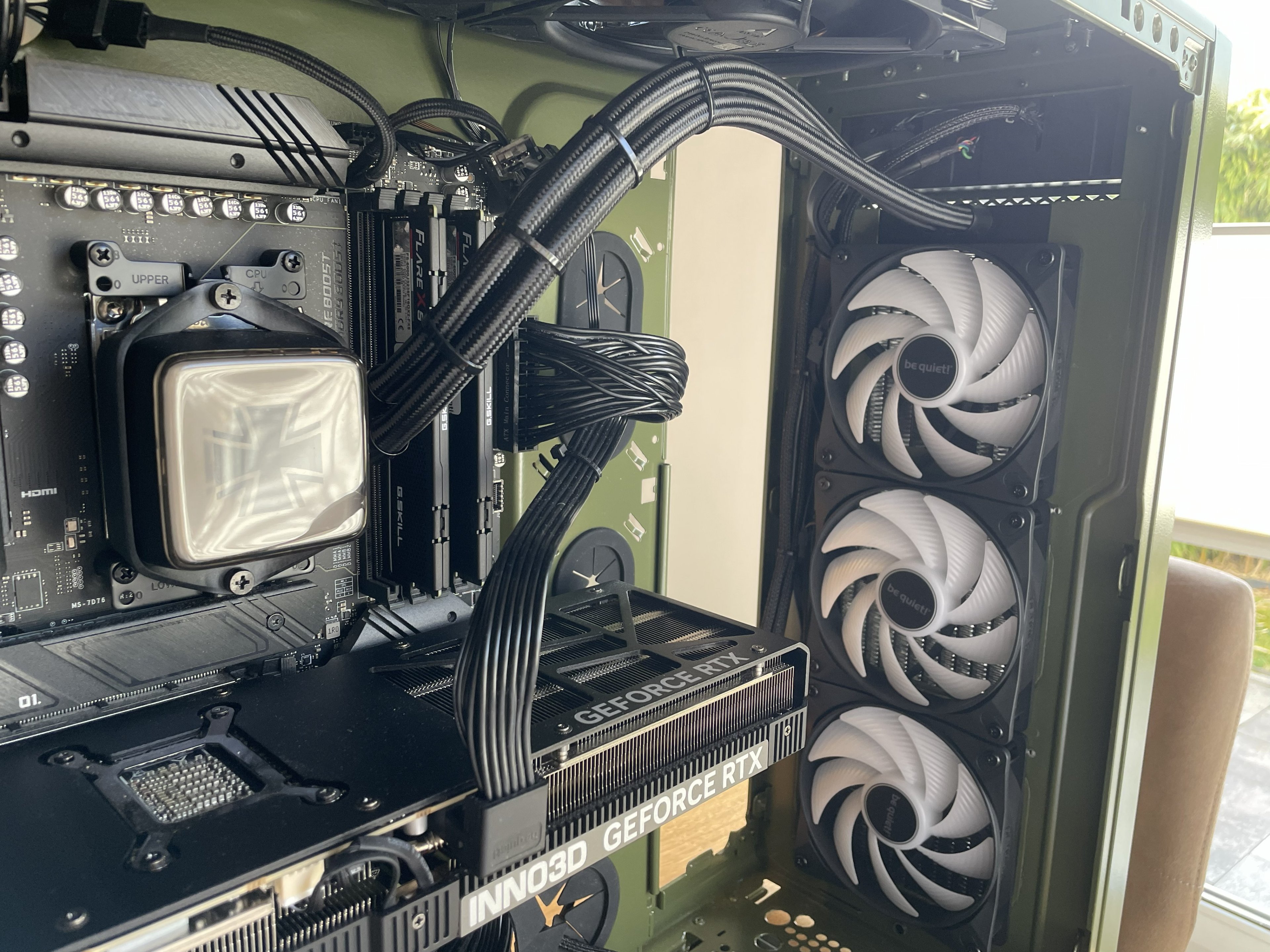- 4x be quiet! Light Wings LX 120 (einer Reverse), 4x Arctic P14 Pro (zwei Reverse), 1x Arctic P12 Pro