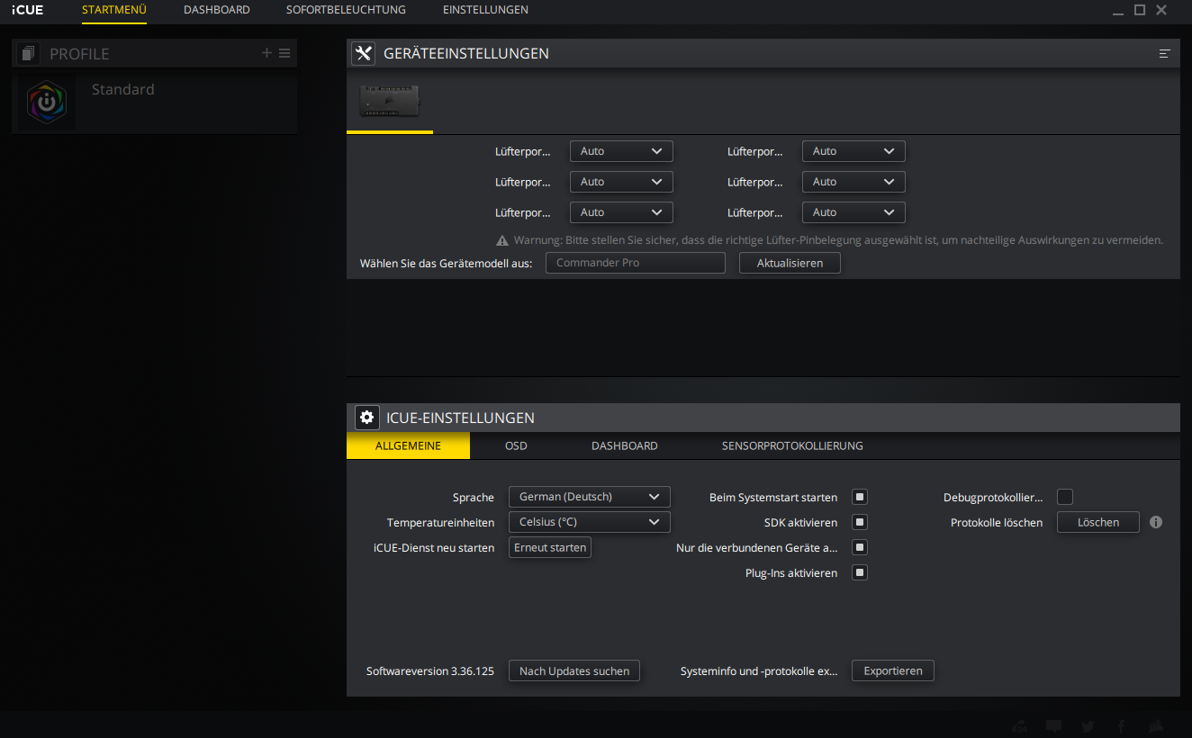 Nach paar Tagen nach einem Corsair ICUE Upgrade funktionierte der Commander Pro plötzlich nicht mehr. Die Lüfter flackernden durchgängig. Die Lüftergeschwindigkeit war davon aber nicht betroffen und die Lüfter liefen wie nach meiner Lüfterkurve weiter.