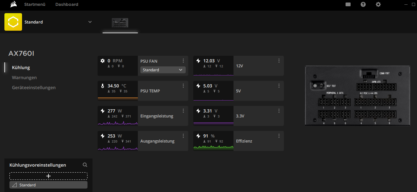 550W? Schon fast niedlich im Vergleich zum aktuell werkelnden Corsair Ax860i im System, was auch nur als Ersatz gekauft wurde weil das AX1200i nen Garantiefall war. Unberührtes Austauschgerät liegt jetzt im Regal, falls es doch nochmal nötig wird ...