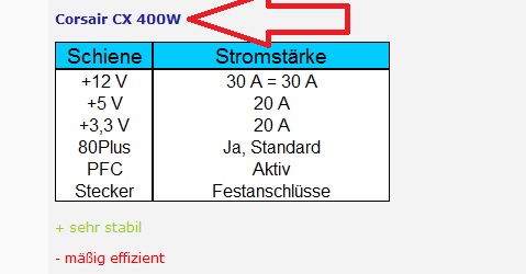 hallo ich hab eine frage zum Corsair CX Serie Netzteil PSU 430W
