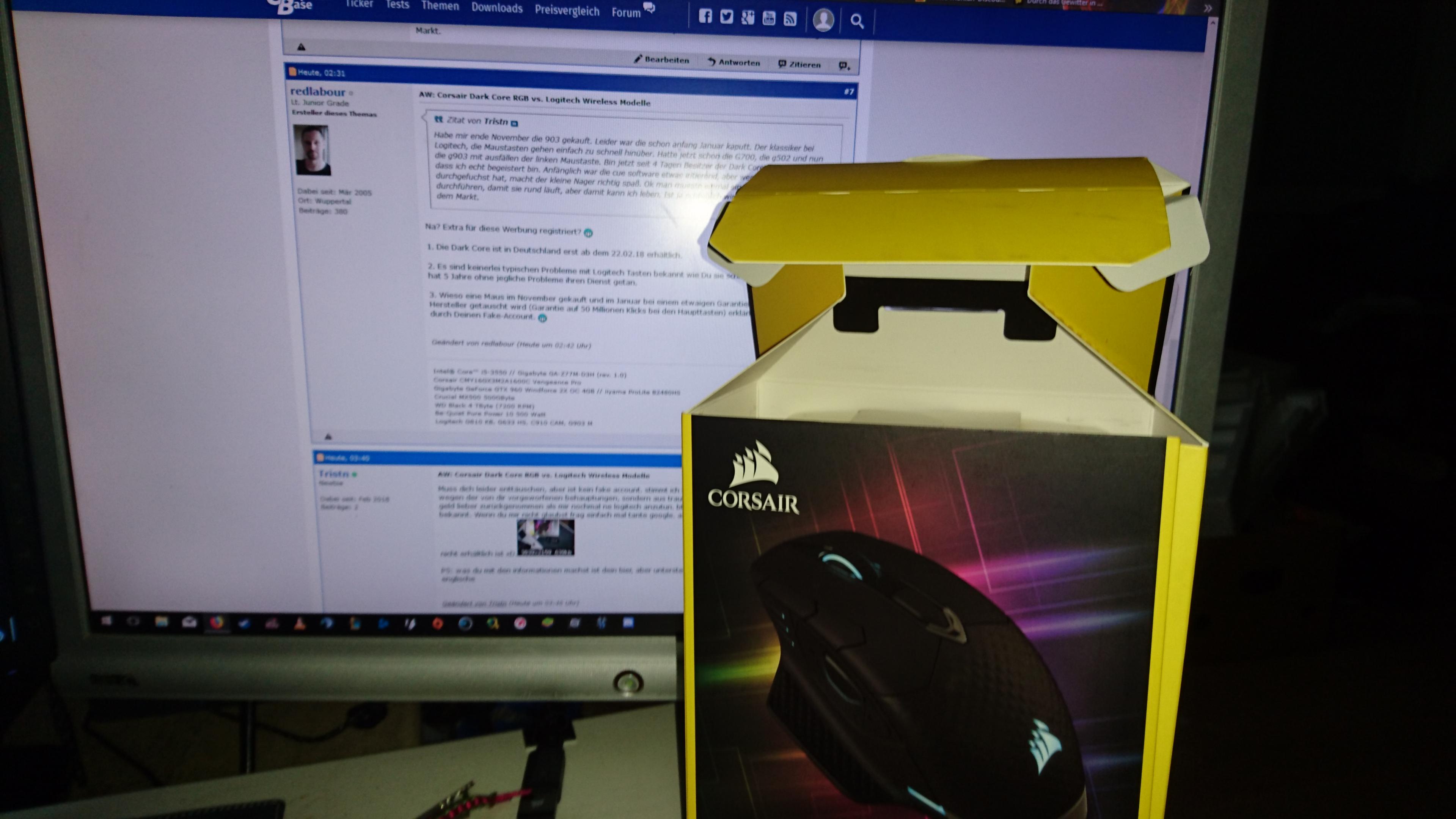 Ich habe mir jetzt die 903 und die 703 zur Ansicht bestellt. Die Haptik wird entscheiden. Die Dark Core RGB hat offensichtlich nach den ersten Verkäufen in den Staaten derart massive Verbindungsprobleme und Firmwarebugs das Corsair den hiesigen Marktstart von Ende Januar auf nun Ende Februar verschoben hat.