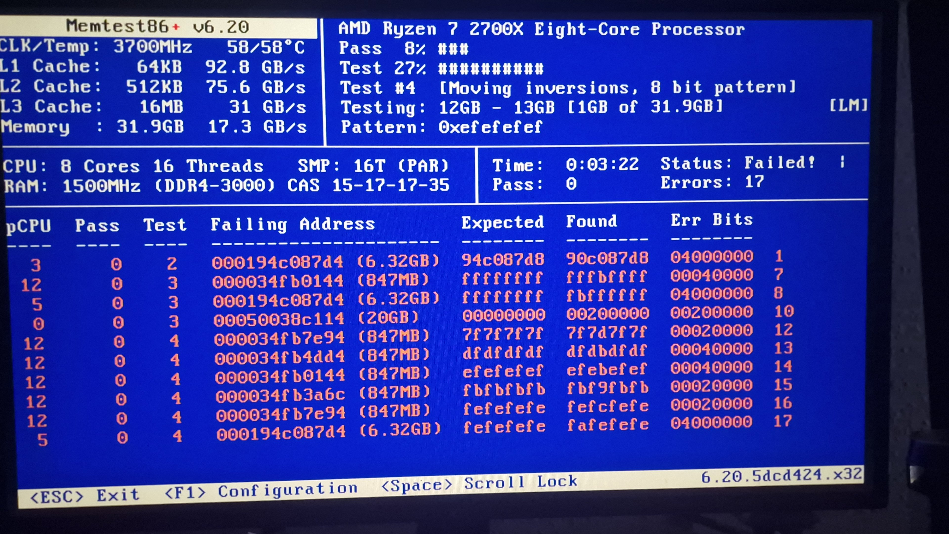 Bei 3133 und 1.345V waren die Errors Identisch als mit den XMP 3000er Profil.
