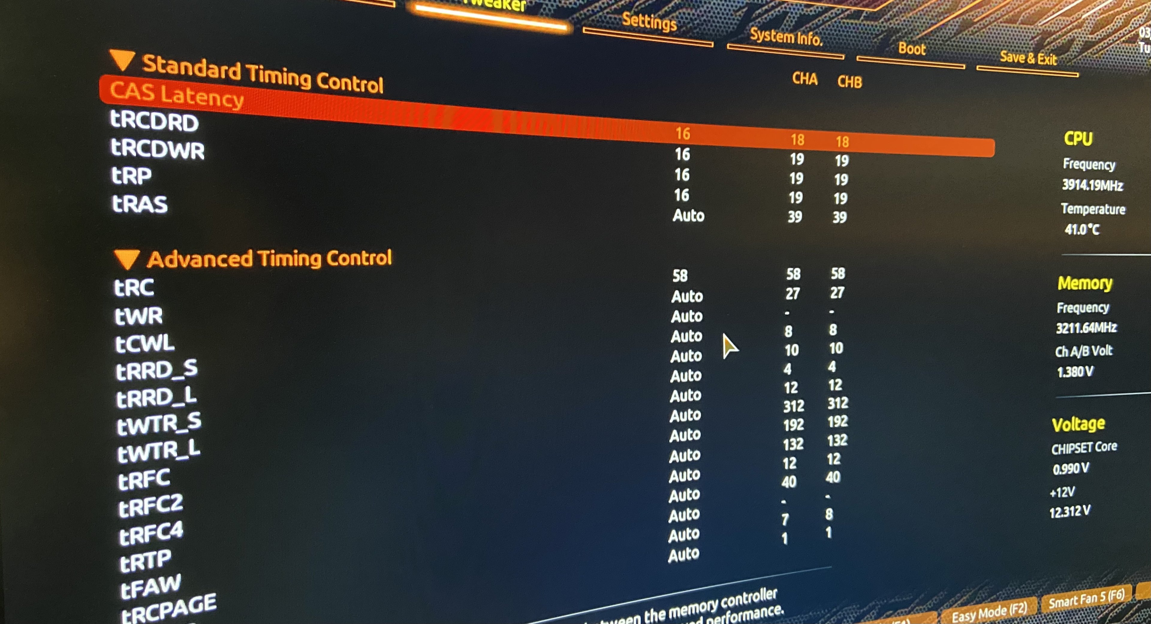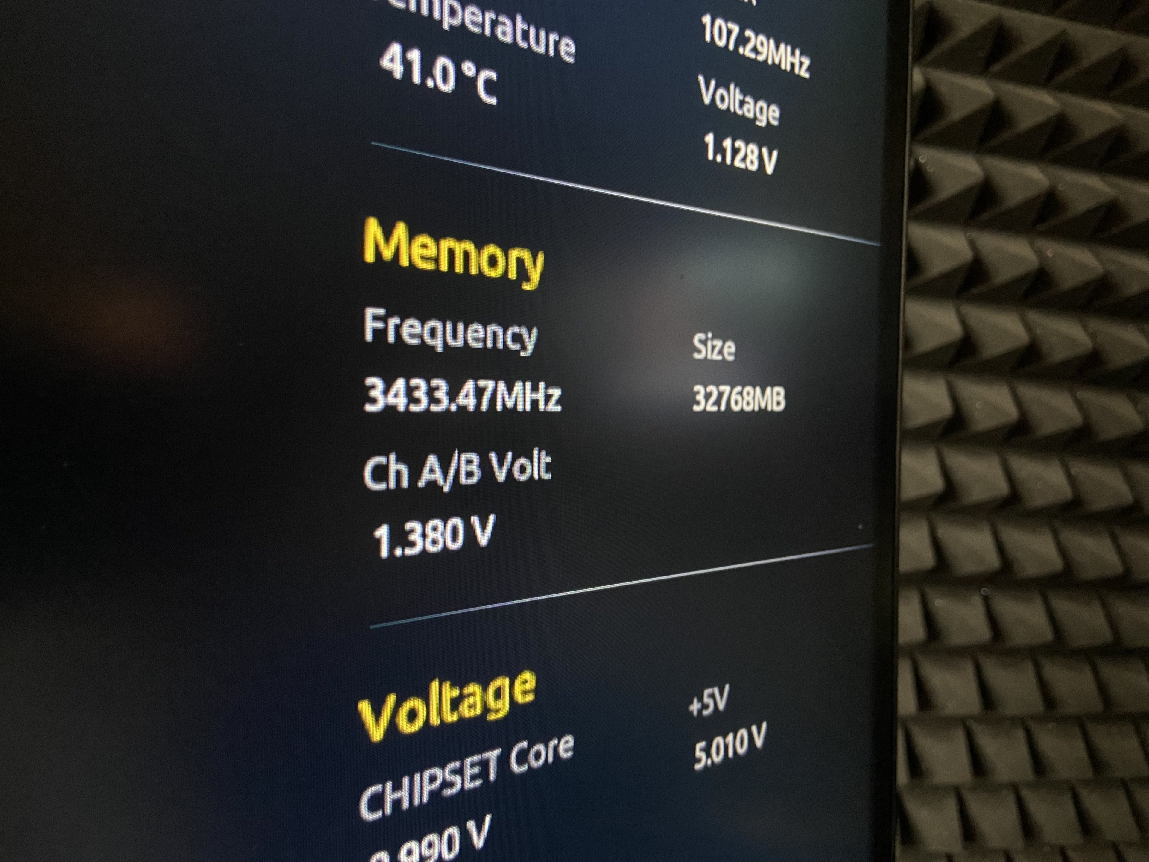Im BIOS steht jetzt aber 3433.47MHz zu Ch A/B Volt 1.380. Da hat es schon einmal geklappt. Wobei es ja mehr als 3200MHz sind.