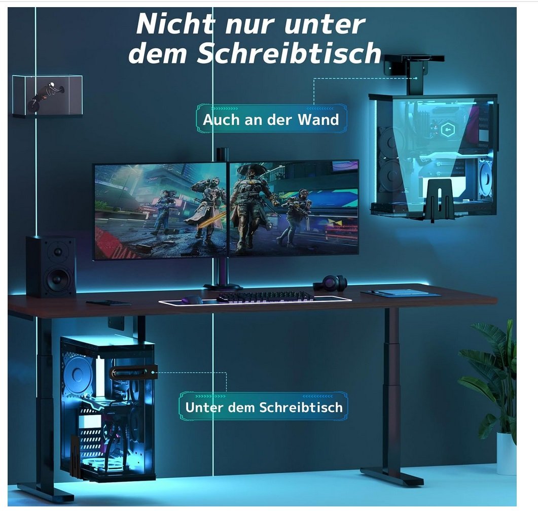 Kabelmanagement hab ich eh schon unter der Tischplatte und vom Wandanschluss (Strom) direkt hoch.