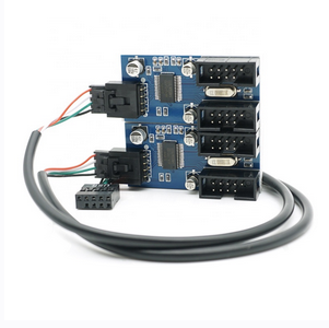Jetzt versuche ich gerade alle Stecker anzuschließen. Aber ich verstehe gerade nicht, wie ich alles unter einen Hut bringe. Den USB 3 Stecker habe ich schon durch das Gebäude hinten rausgelegt und ins Mainboard von außen eingesteckt. Der USB Steckplatz des Mainboard ist schon mit dem USB Stecker der Lüftersteuerung belegt. Was mache ich aber mit den beiden USB Steckern des Gehäuses? Selbst wenn ich den Lüfter nicht drin hätte, wäre das ein Steckplatz für zwei Stecker…
