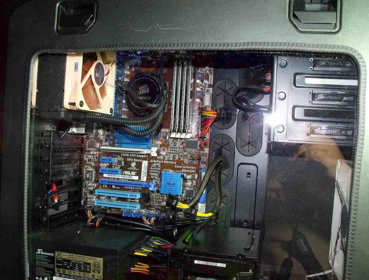 Hier knarzt nichts. Die größte Ausdehnung hat mein Gehäuse da, wo die Grafikkarte ist. Also nur da wird das Gehäuse wirklich warm.