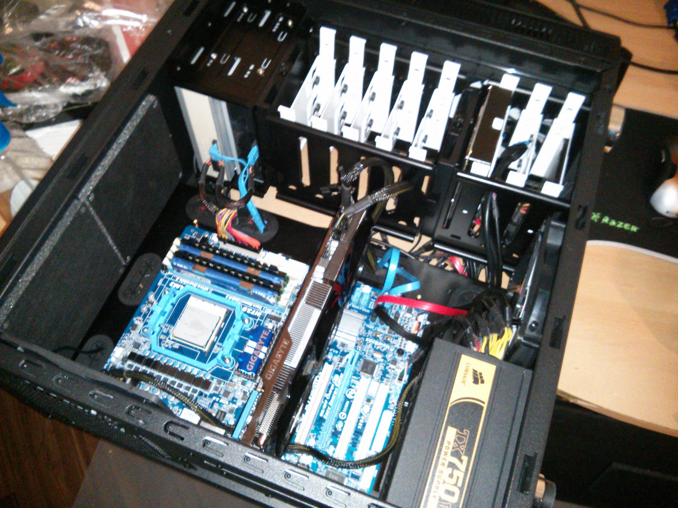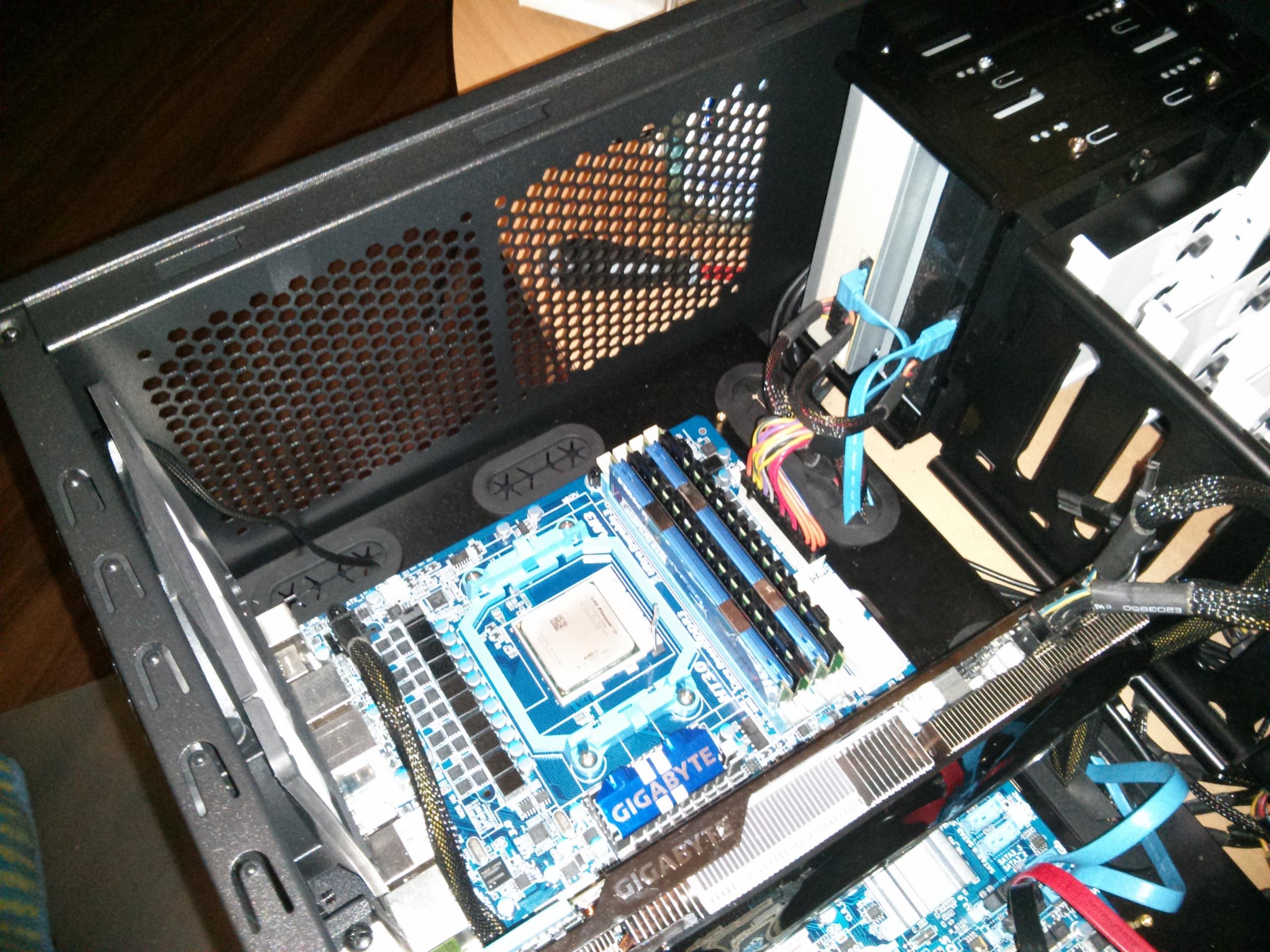 mit 3 Gehäuselüftern (1x vorne vor Festplatten, 1x unten und 1x Rückwand) und Corsair H100 mit Noctua NF-F12 PWM Lüftern