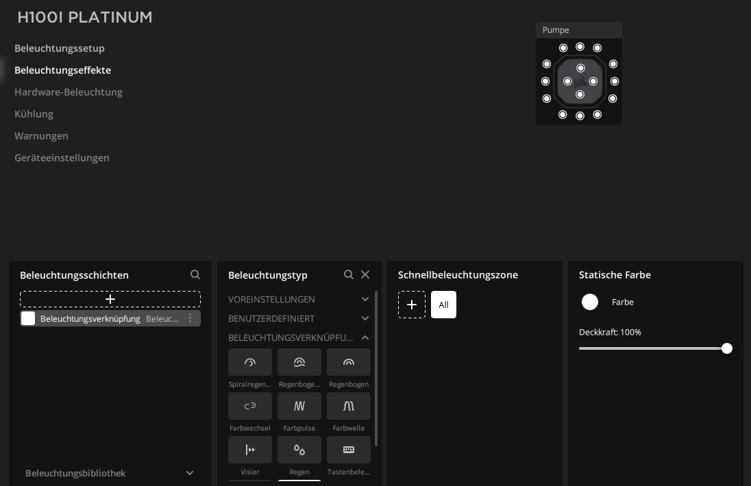 ich habe eine Corsair H100i rgb platinum, allerdings, wenn ich sie weiß leuchten lassen will, leuchtet sie in grüngelb (siehe Foto).