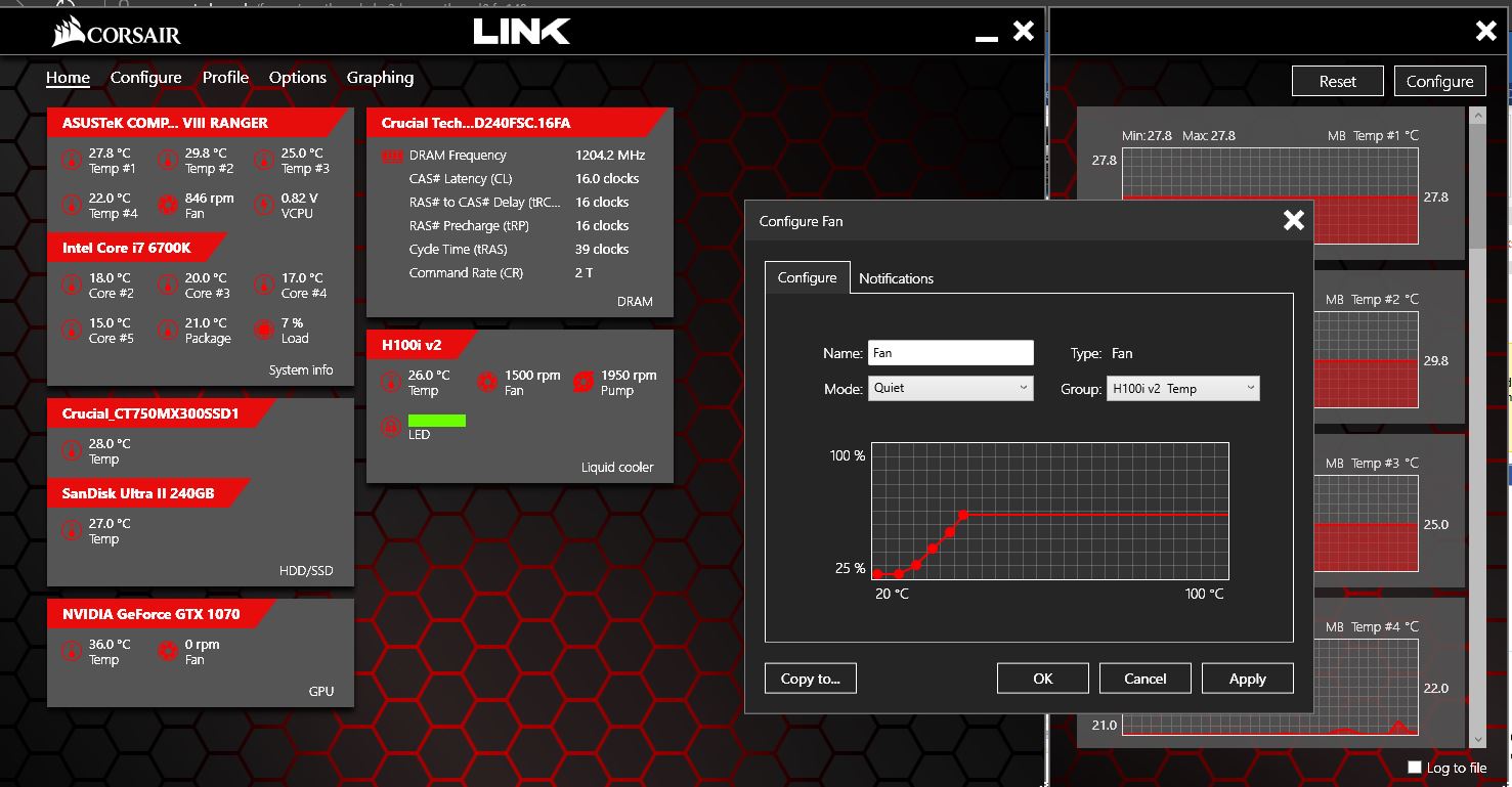 im BIOS musste ich erstmal die CPU FAN Control deaktivieren damit das System sich überhaupt starten ließ - dafür hab Ich das Problem das die Lüfter mit vollen 1500 RPM laufen und sich weder mit Corsair Link noch Speedfan in irgendeiner weise regeln lassen