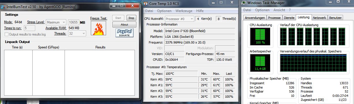 Von der Kühlleistung bin ich auch enttäuscht habe mein i7 auf 3.3Ghz übertaktet, trotzdessen erreicht die CPU 60°C. Mein Noctua hatte hier lediglich 5°C mehr. Im Anhang ist ein Screen.