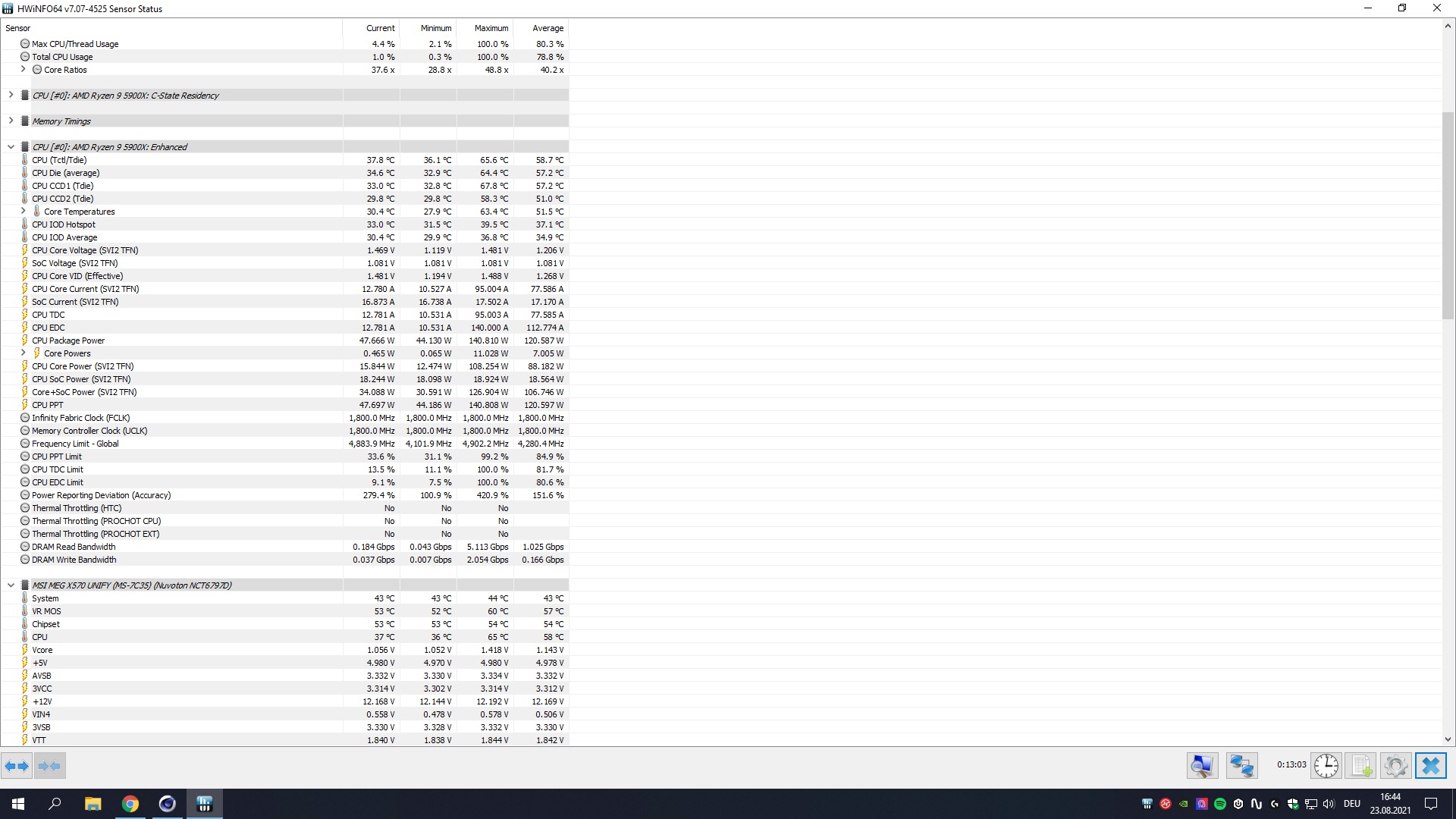Laut iCue läuft die Pumpe und die Temperaturen sind normal.