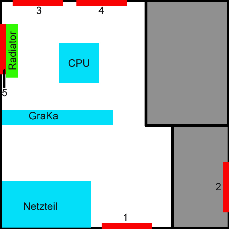 Lüfter 5 hat früher am CPU- Kühler gesessen und warme Luft nicht hinten geblasen.