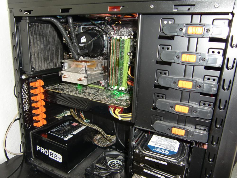 Dann habe ich einen Lüfter oben angebracht der die luft rein bläst auf den kleinen lüfter daruter ( mir föllt gerade der name nicht ein ^^ der kleine orangene ^^)