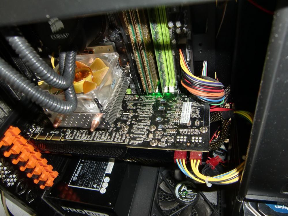 Am gehäuse boden bläst er direckt zur graka wo die graka die luft ansaugt und direkt wieder raus. Ich find das prob jetzt nicht das der so war ist.