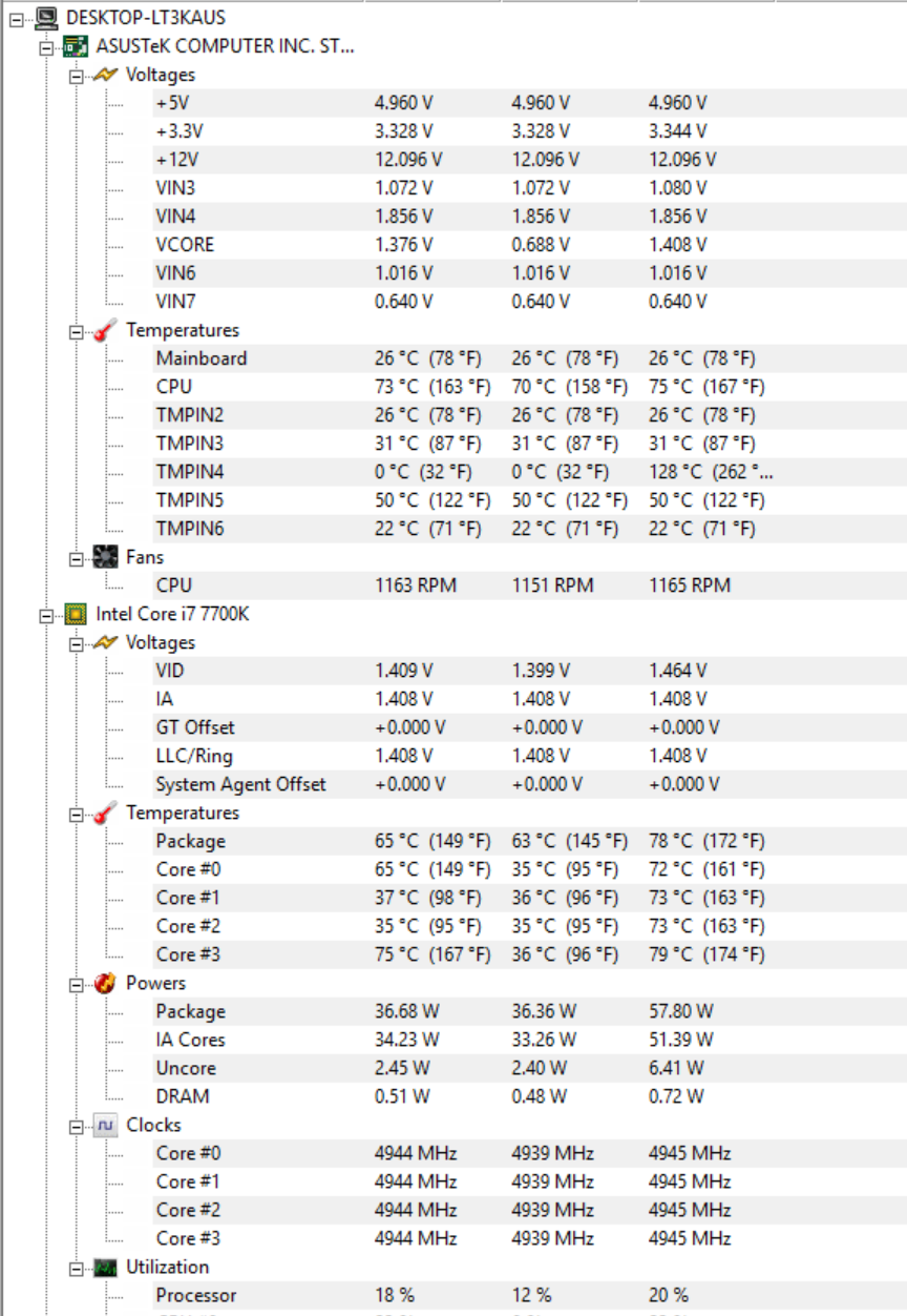 Ich habe mir gestern meinen neuen PC zusammengebaut, mit einer Corsair Hydro 115i Wasserkühlung auf einem i7-7700 Prozessor. Ich arbeite seit heute morgen mit dem Computer und habe vorhin in die Corsair Link Software reingeschaut, da stand bei mir bei den einzelnen Prozessorkernen Temperaturen von ca. 70 bis 80 Grad!! (