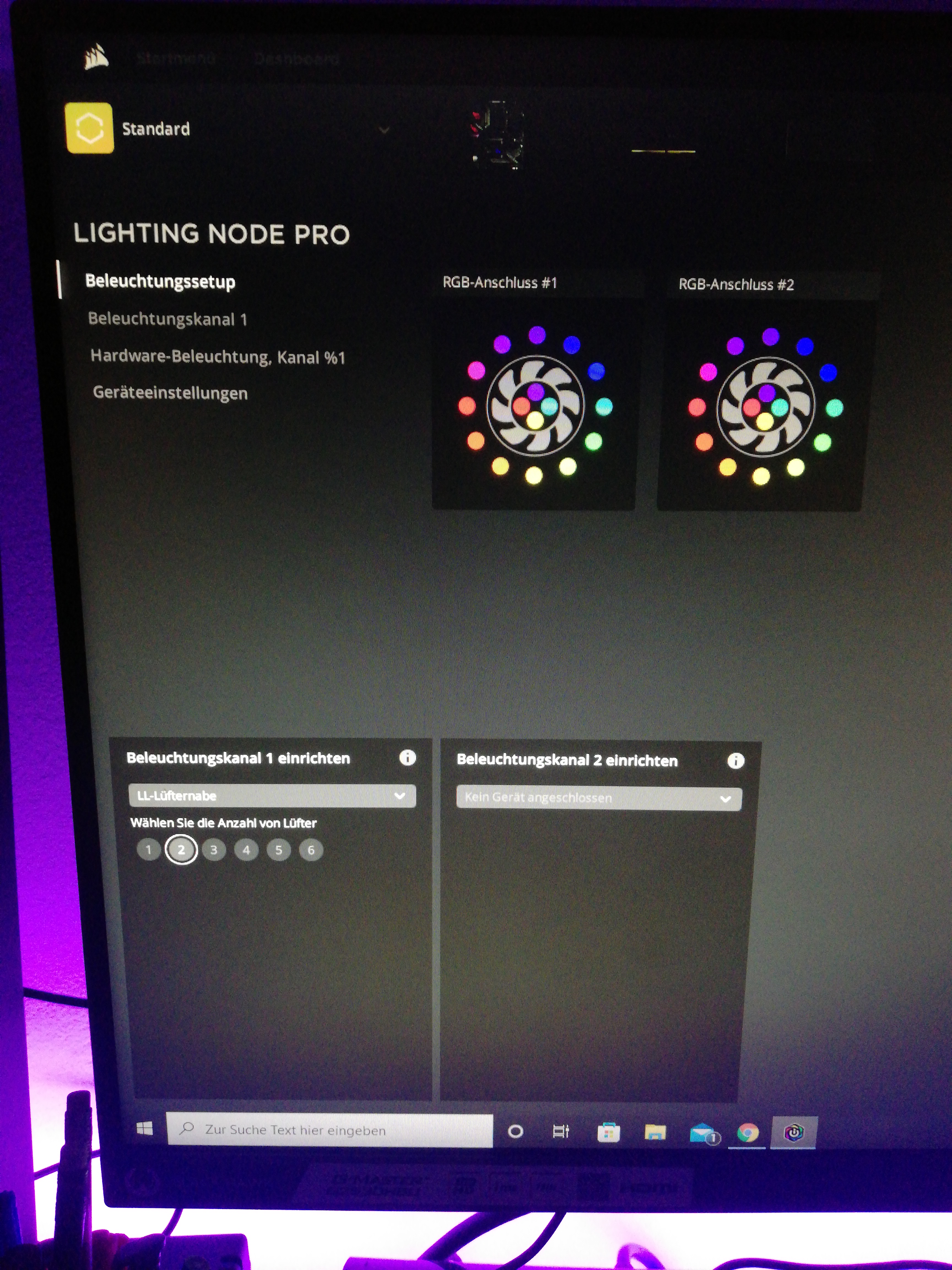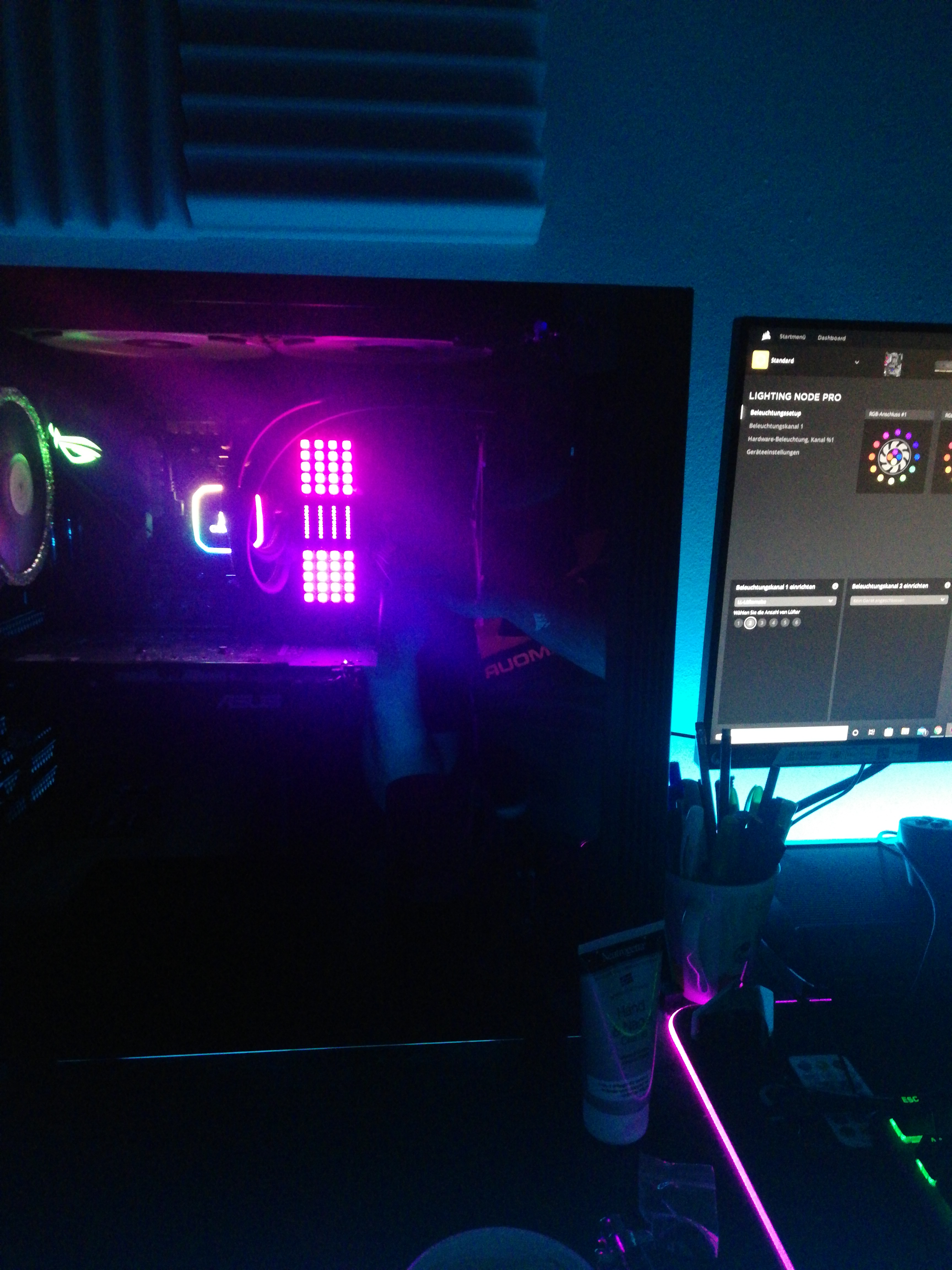 Hallo Leute habe heute meine neuen Corsair LL 140 mit Lightning Node Pro bekommen und natürlich gleich eingebaut. Habe alles Laut beiliegender Anleitung zusammengesteckt außer den USB. Den habe ich hinten am Mainboard angesteckt da mein MB nur einen USB 2.0 Anschluss hat und da bereits der Corsair Wasserkühler vom CPU dransteckt.