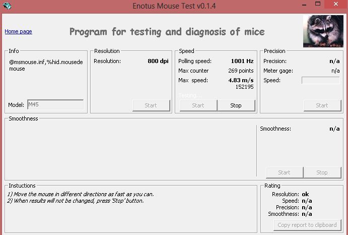 Ich habe den Enotus Test auch für die beiden anderen nativen DPI Steps durchgeführt (2400, 5000) und nie weniger als 4,5m/s erzielt, sehr gut.