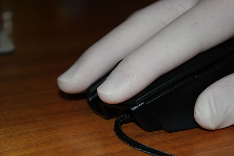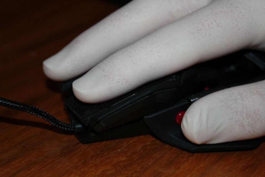 Dazu das Vergleichsfoto mit einer RAT wo das letzte Glied des Mittelfingers noch mit der Mitte den 2. Mausbutton treffen kann. Das schaffe ich bei der M45 nicht.
