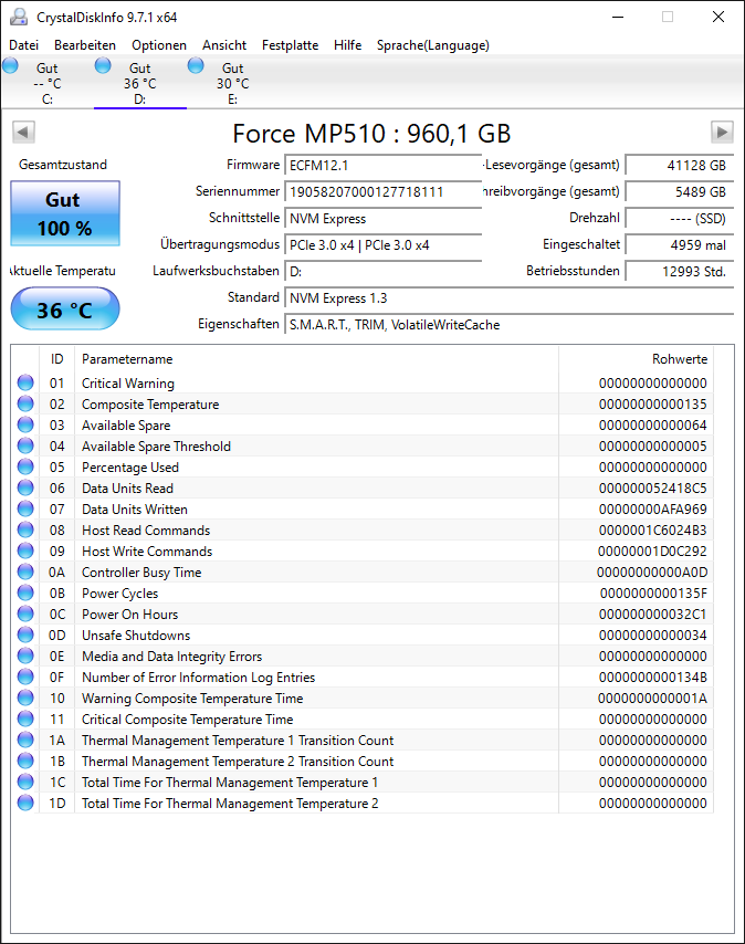 Angefangen hat es damit, das mein PC aus dem Ruhezustand nicht mehr richtig aufgewacht ist. Es dauert immer etwa eine Minute während der PC laut Kontrollleuchte auch mit irgendwas beschäftigt ist, dann startet der PC neu. Ist der PC dann mit seinem Neustart fertig, fehlt regelmäßig Laufwerk D, welches eine Corsair MP510 ist. (Laufwerk C / Crucial M4 ║ Laufwerk E / WD15EARS)