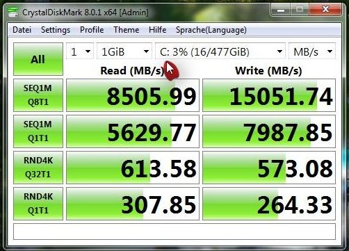 Den Effekt der so erreichten Geschwindigkeit erfassen CrystalDiskmark, AS SSD Benchmark & Co. nun mal nicht. Die Word mit 800 bebilderten Seiten steht bei mir so in einer Zehntel Sekunde am Schirm, da ist der Finger noch nicht mal von der Maus-Taste weg.