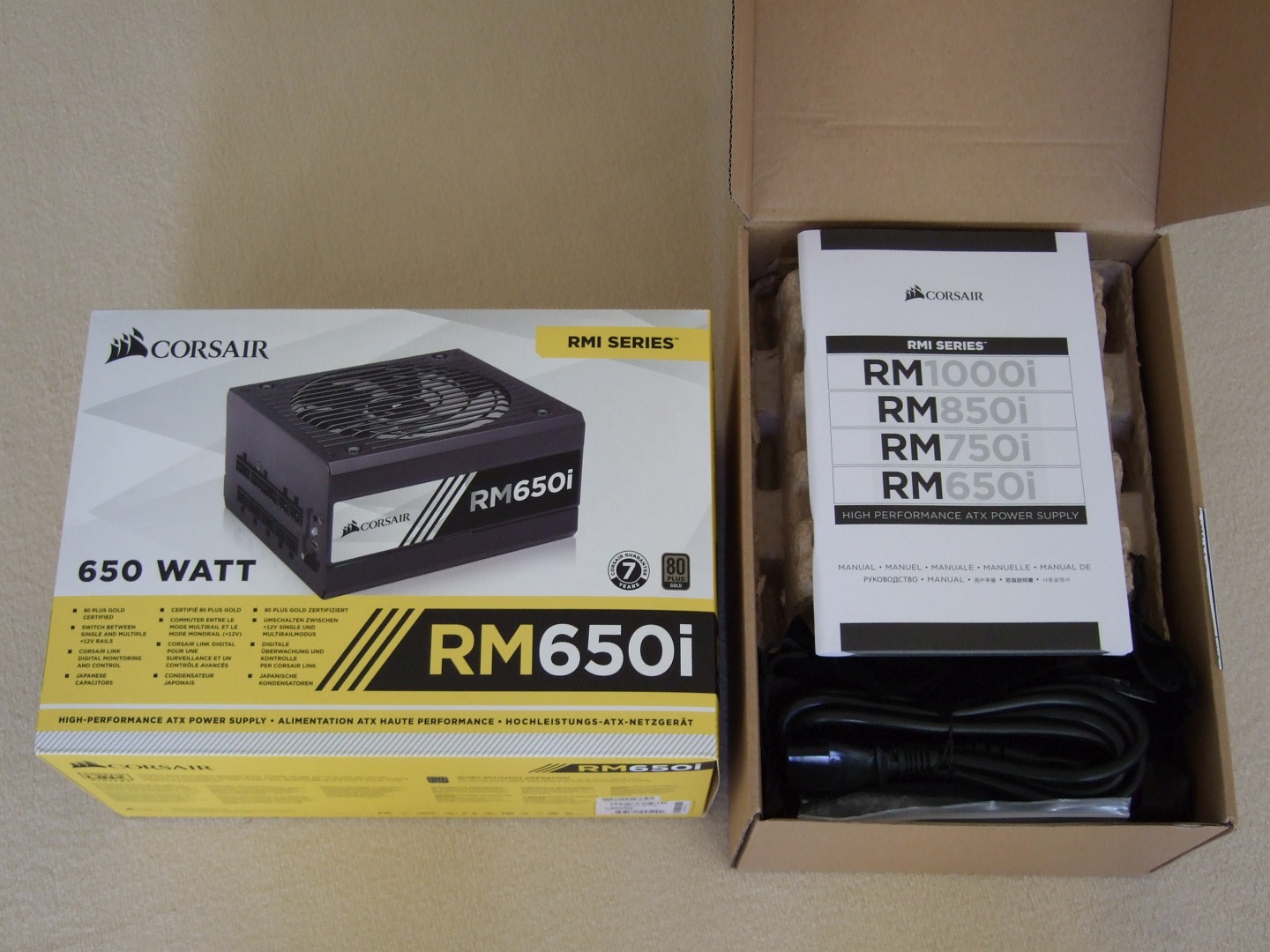 Ich will nun mal testen, in wieweit das neue Netzteil „Corsair RM650i“ meine hohen Erwartungen erfüllen kann. Dieses wurde freundlicherweise von Corsair zum Test bereitgestellt, an dieser Stelle danke dafür. Es muss bei mir gegen ein Enermax Pro87+ 500W antreten, das vor wenigen Jahren etliche Awards einheimsen konnte, also kein Fallobst als Gegner. Aber schauen wir und erstmal an, wie das Corsair ausgeliefert wird.