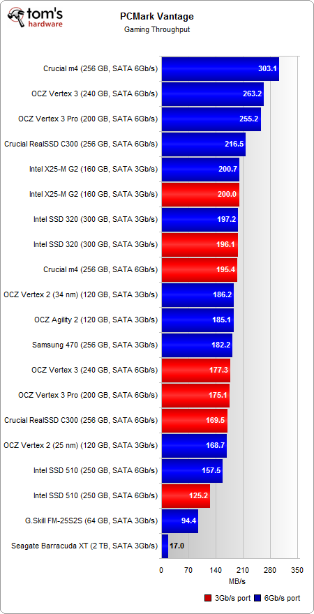 Die Seagate Barracuda XT (HDD) ist also knapp 18mal langsamer als eine m4 256GB beim Gamingthroughput, also Ladezeiten?