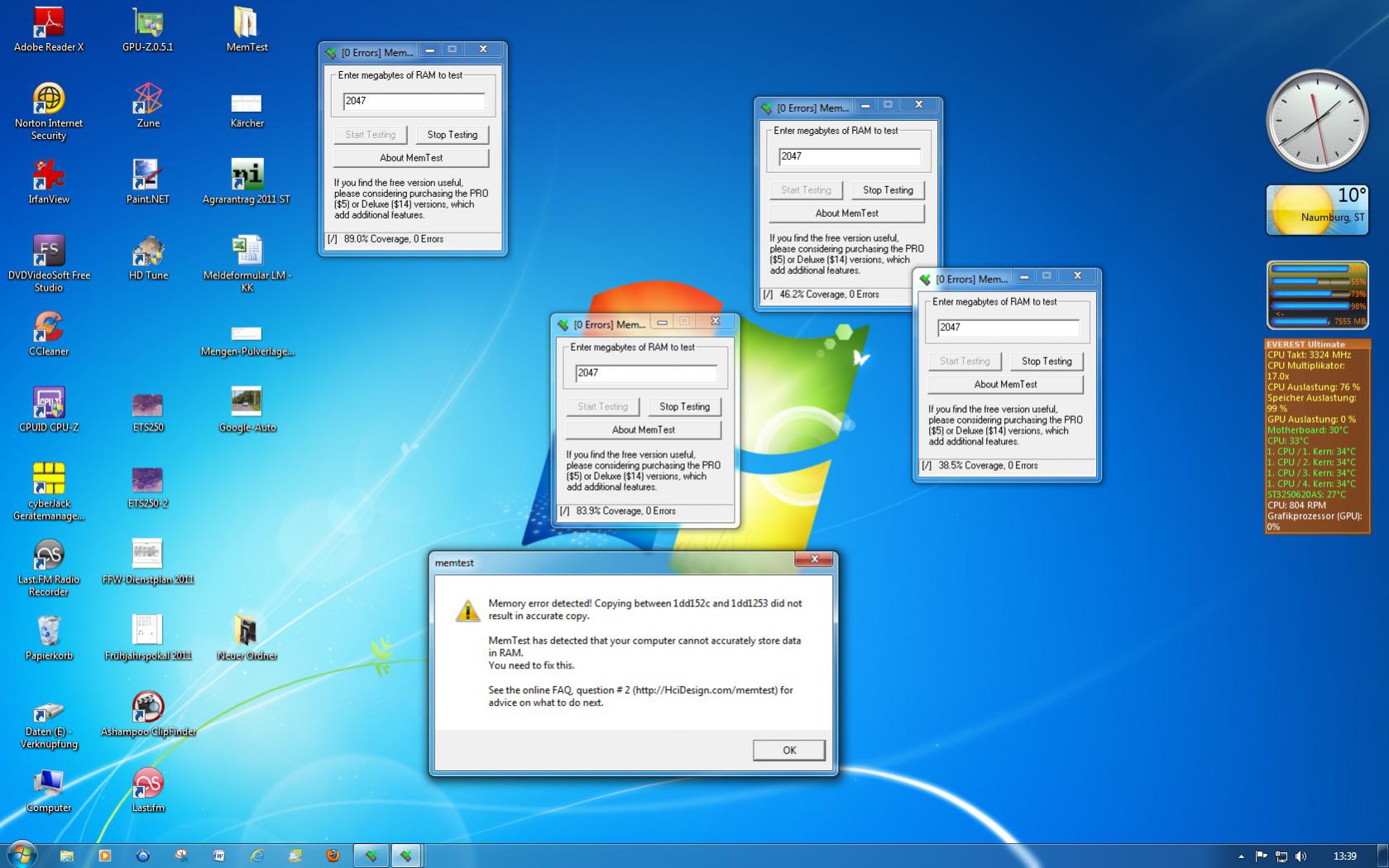 Seit nunmehr 3 Stunden läuft ein Memtest unter Windows, wo nun folgende Fehlermeldung auftaucht: