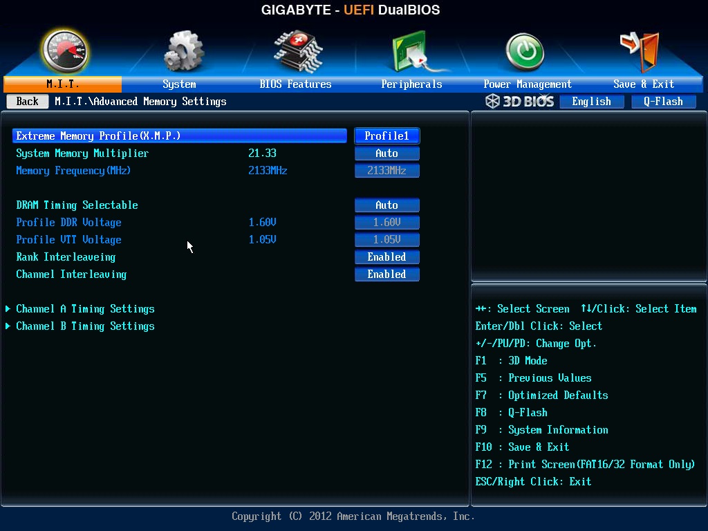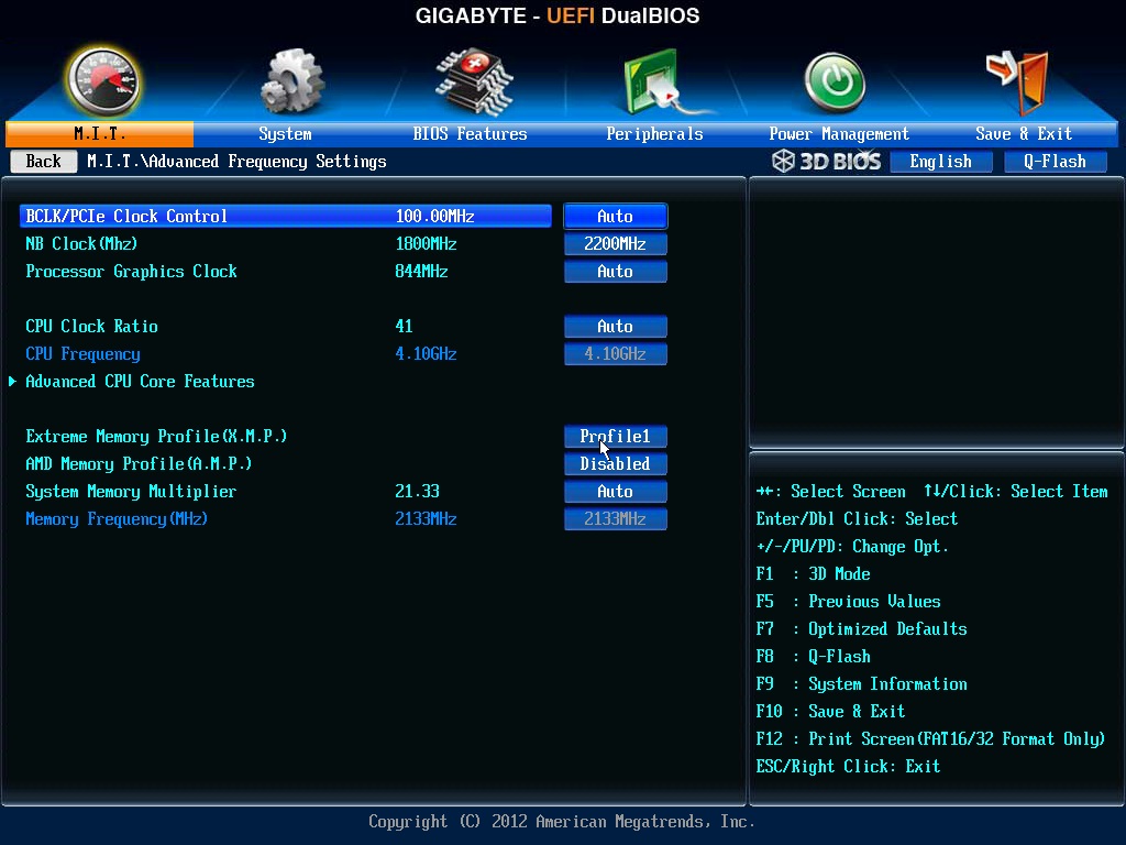 Hier ist ein PC mit einem AMD A10-680OK und RAM mit 2133MHz versehen. Im UEFI/ BIOS sind die genau gleichen Einträge und sowohl die Aktivierung des XMP als auch die Auswahl von Profile1 (2133MHz RAM-Takt) funktionieren hier bei diesem PC - siehe Screenshot.