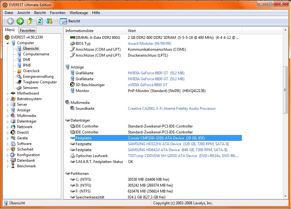 Bei Everest wird meine Corsair X32 SSD als IDE Laufwerk angezeigt. Andere SATA Festplatten als SATA II. Liegt das daran, dass ich keinen AHCI, sondern den IDE Mode aktiviert habe? Nur warum sind die anderen dann nicht auch IDE Devices?