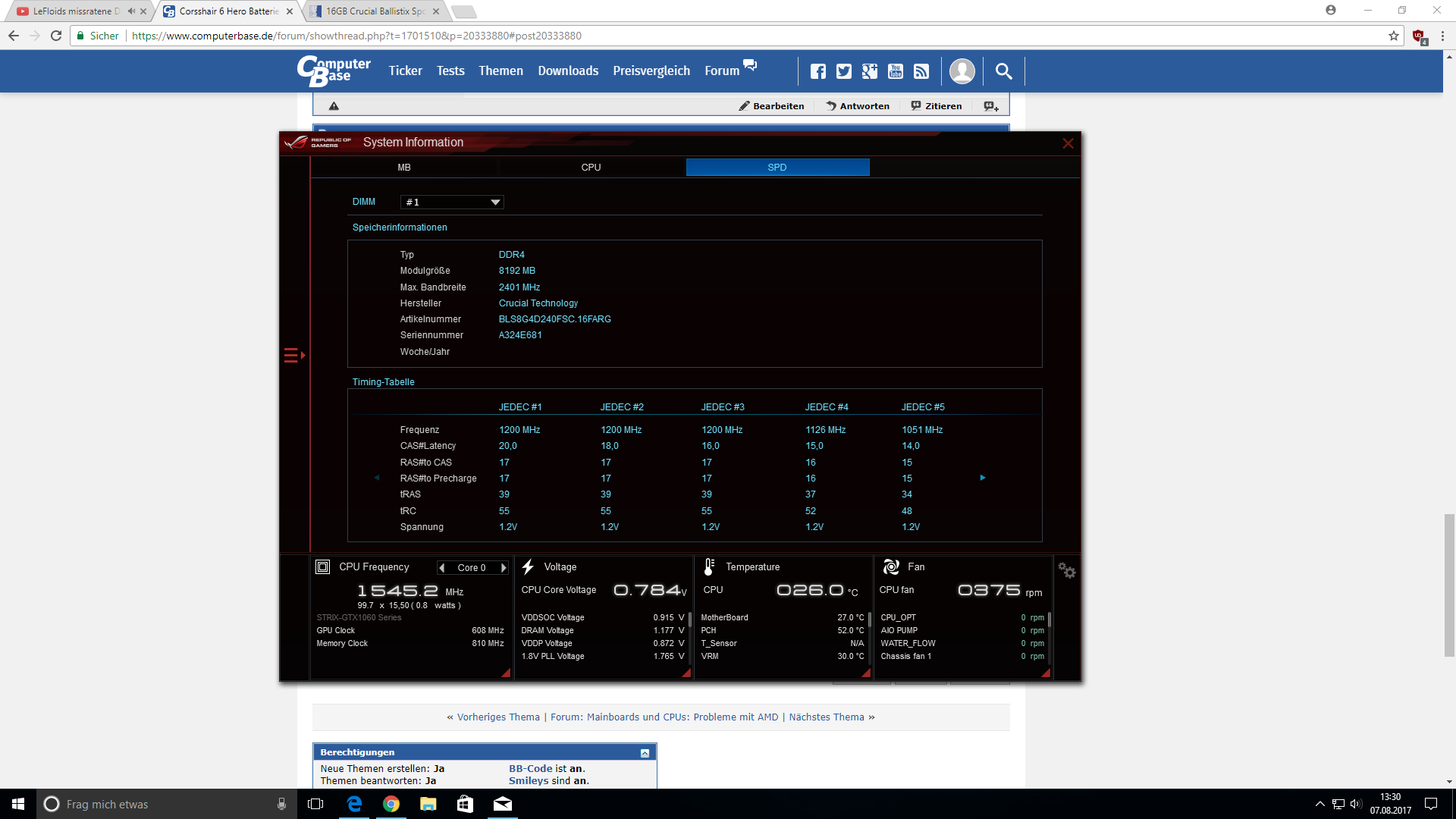 Als Board kommt das Crosshair 6 Hero zum einsatz und der Ryzen 1700.