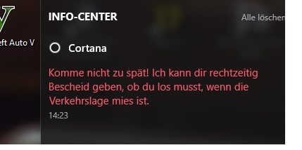 Genua, denn ich bekomme keine Benachrichtigungen von Cortana.
