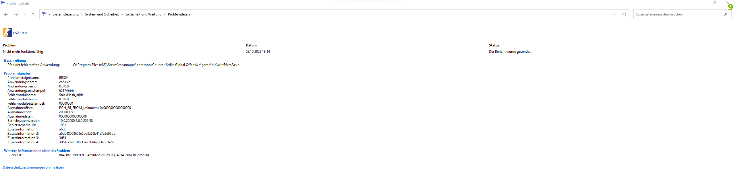 Ich habe Counter Strike 2 sowie auch Steam nun schon mehrmals neu installiert , es auf anderen Festplatten Installiert und der gleichen.