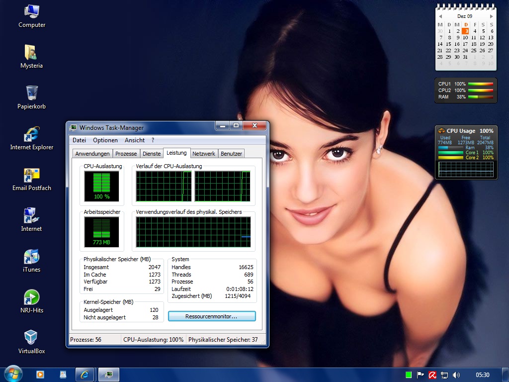 der Task-Manager's und zwei CPU Gadgets