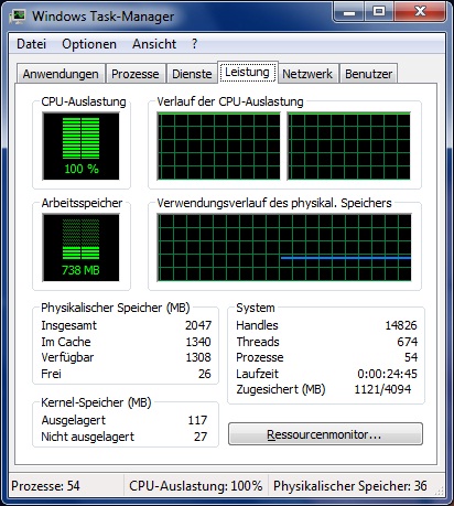mein Task-Manager zeigt an das meine CPU zu 100% ausgelastet ist,