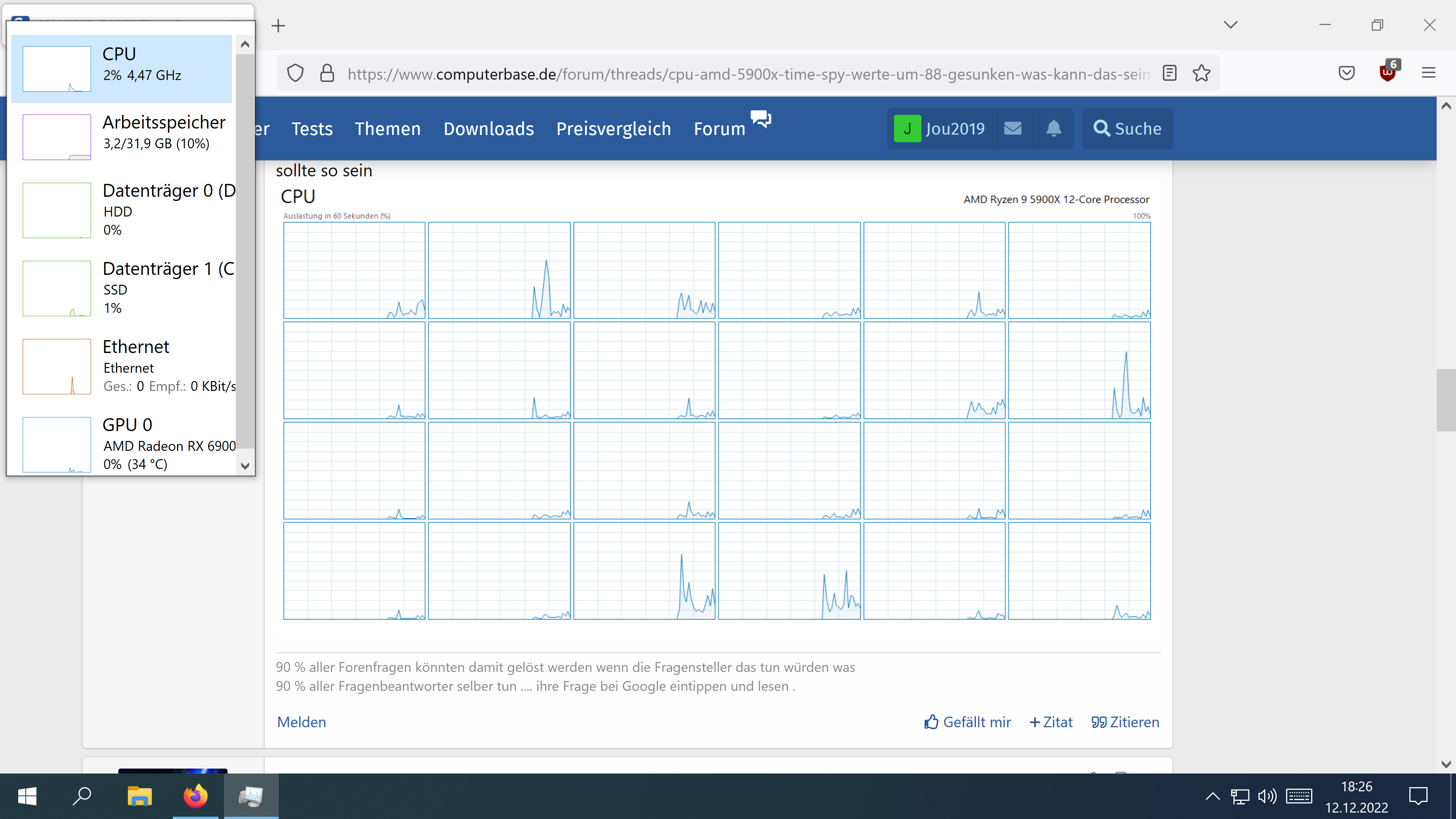 CPU AMD 5900X.Time Spy werte um 88% Gesunken,was kann das sein?