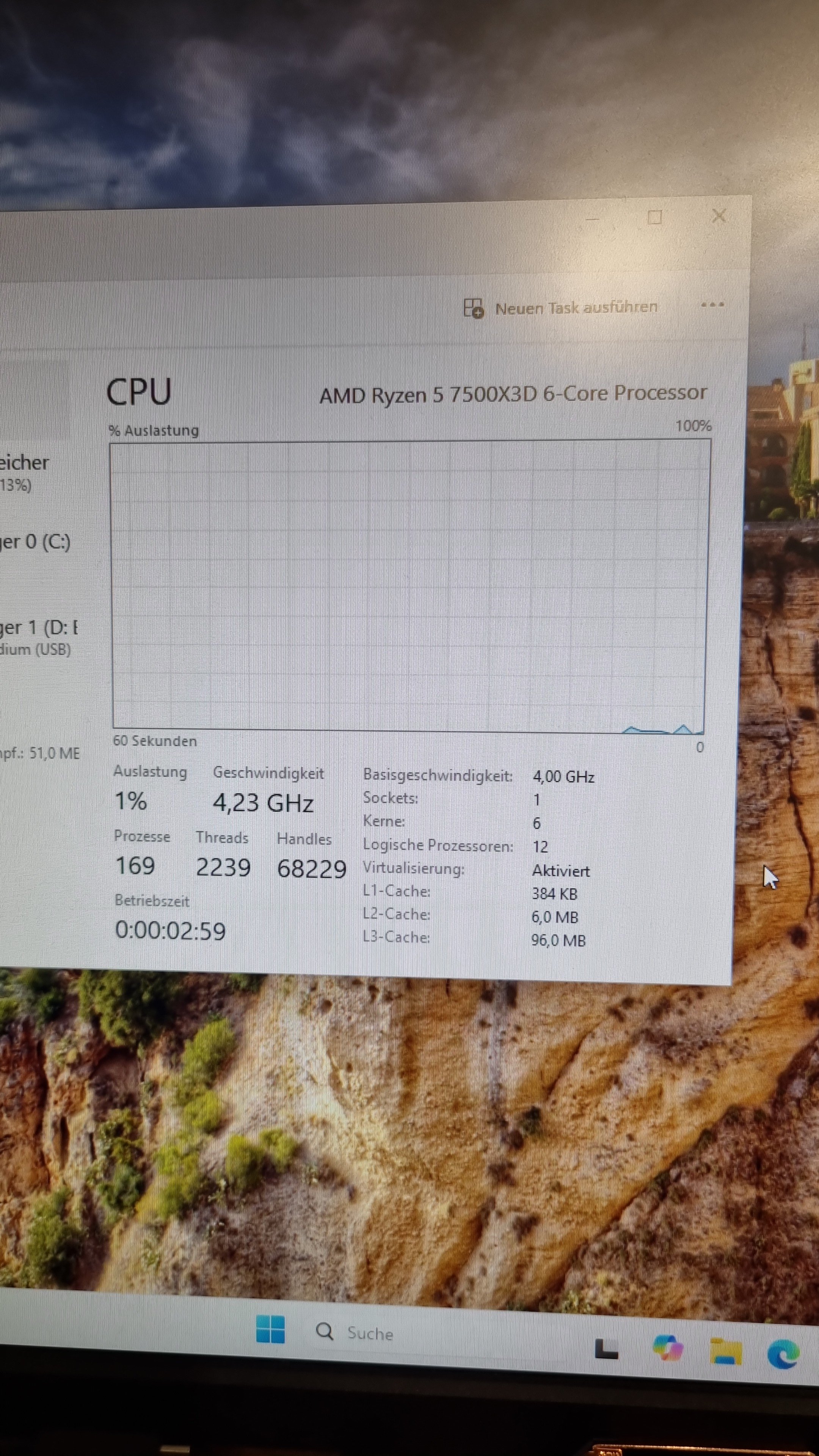 • Prozessor (CPU): AMD Ryzen 5 7500x3d