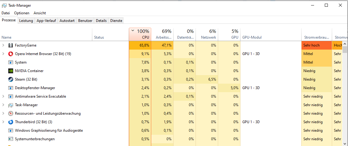 Als Beispiel verwende ich das Spiel Satisfactory. Bis Mitte letzten Jahres hatte ich absolut kein Problem mit Abstürzen und konnte neben dem Spiel noch Emails (Thunderbird) und/oder Videos (Edge/Opera) schauen sowie weitere Programme parallel laufen lassen - also eine Parallelauslastung haben.