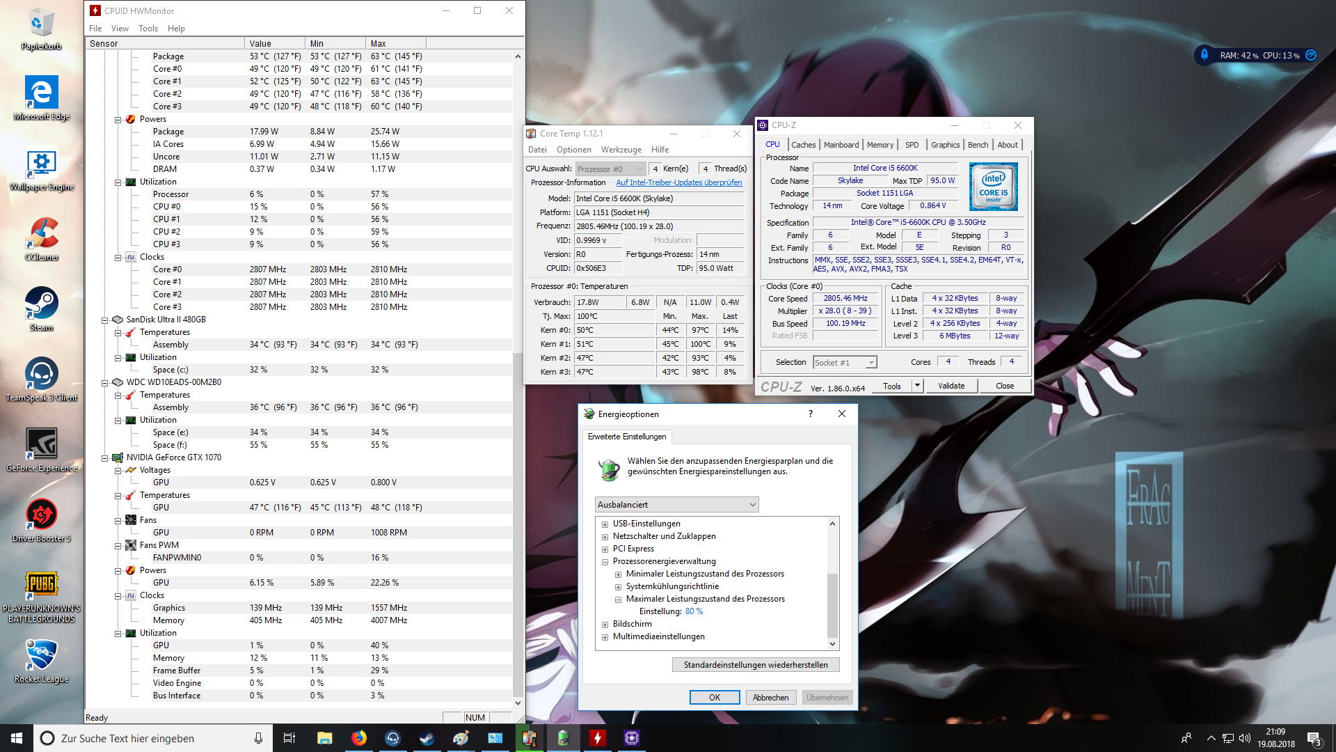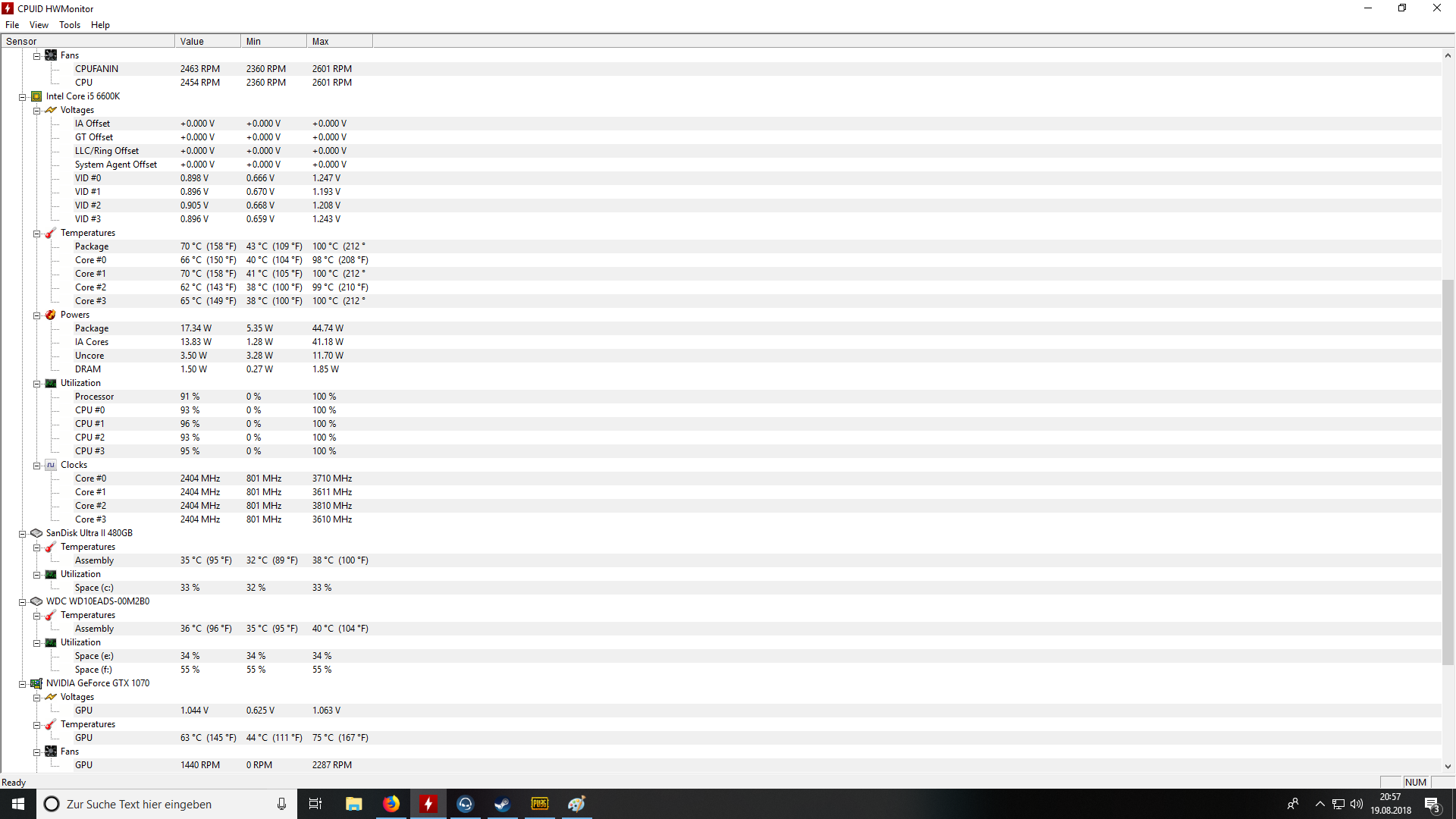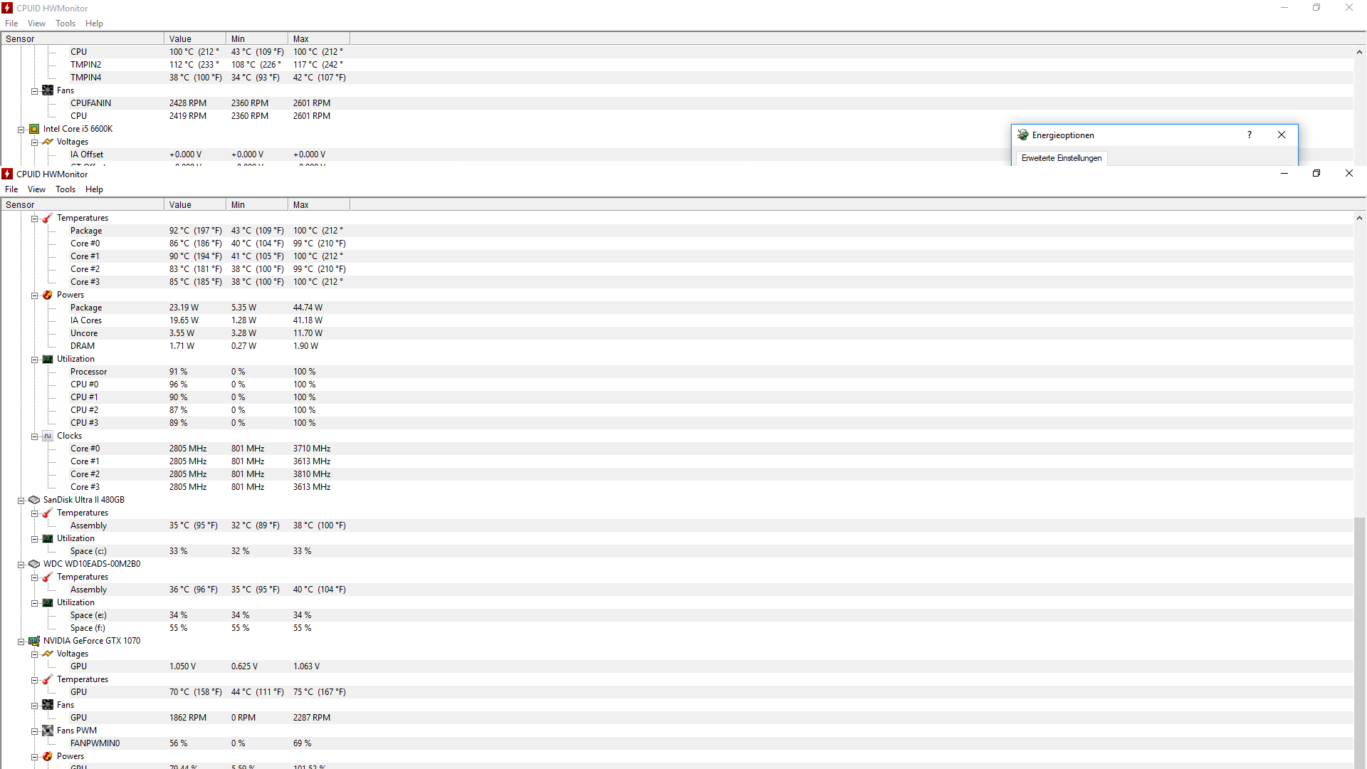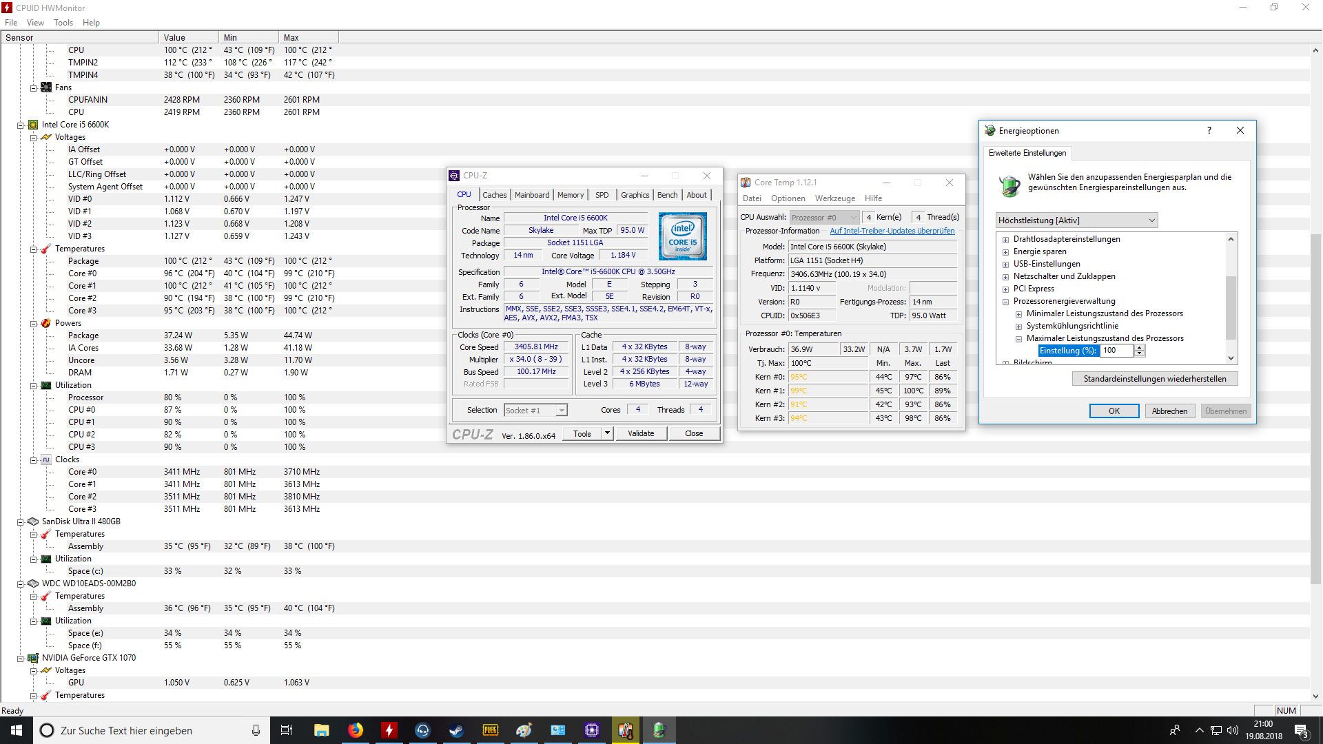 Hallo, undzwar habe ich auf Ebay einen PC gekauft, er meinte er hat ihn davor von 3,5GHz auf 4,2 GHz übertaktet, und hab alles installiert, Kühler war drauf mit WLP, und wollte dann PUBG zocken, aber bei CoreTemp, und CPUID HWMonitor zeigts im Spiel dauernd Package 95C° an , und die anderen 4 Kerne auf 90C° mal hoch mal runter.