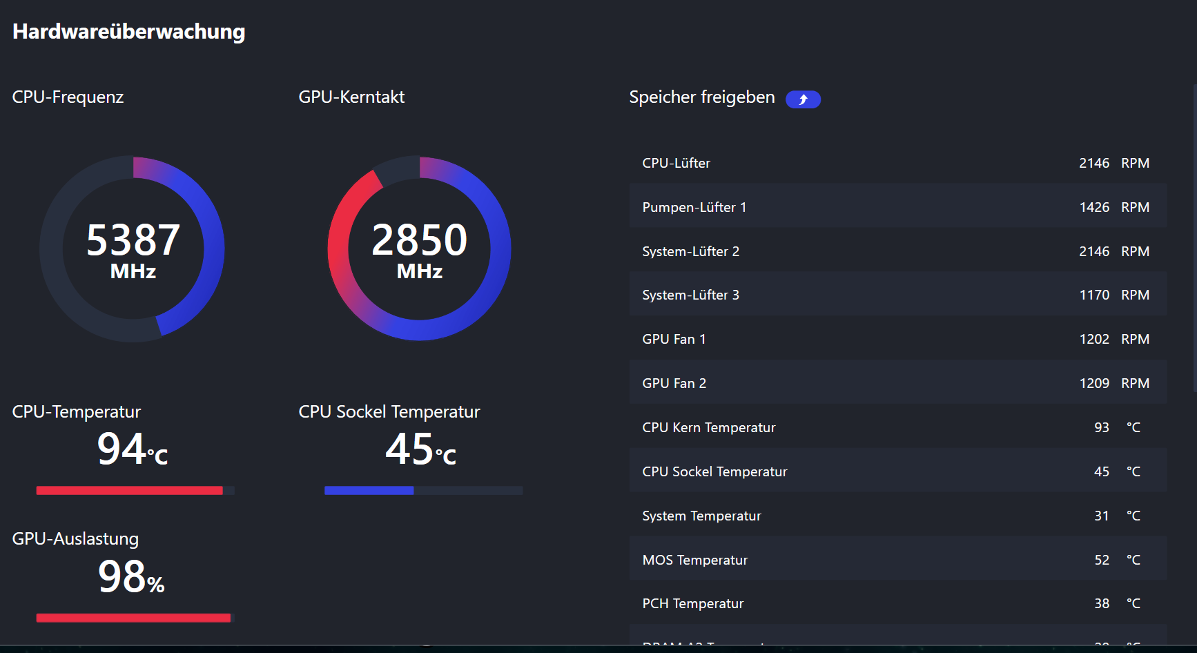 Spiele über Steam, wie beispielsweise Hearts of Iron (nicht unbedingt anspruchsvoll) bringen den PC durch die Kühlung fast zum "abheben". Anspruchsvolle Spiele wie Cyperpunk oder Hogwards Legacy ruckeln und stürzen dann ab. - das muss der PC doch easy schaffen?