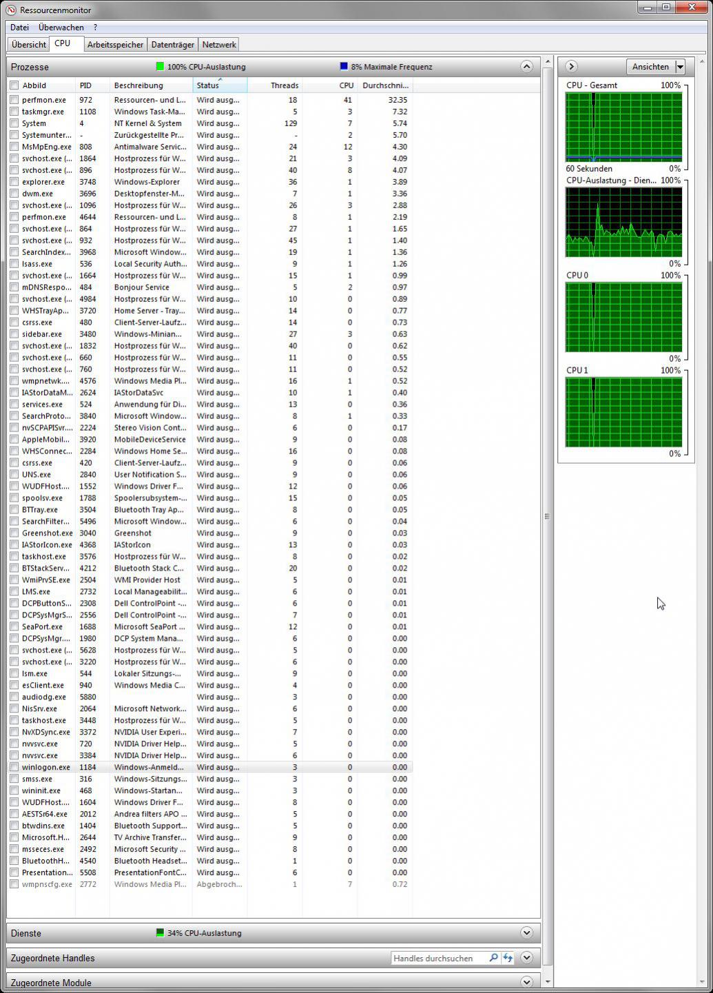 - CPU-Auslastung 100%, nichts geht mehr richtig, alles ruckelig und alle Vorgänge dauern eeewig